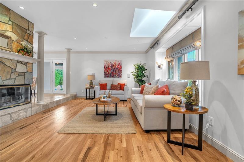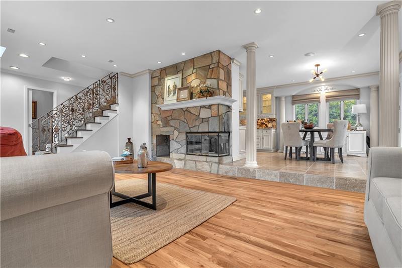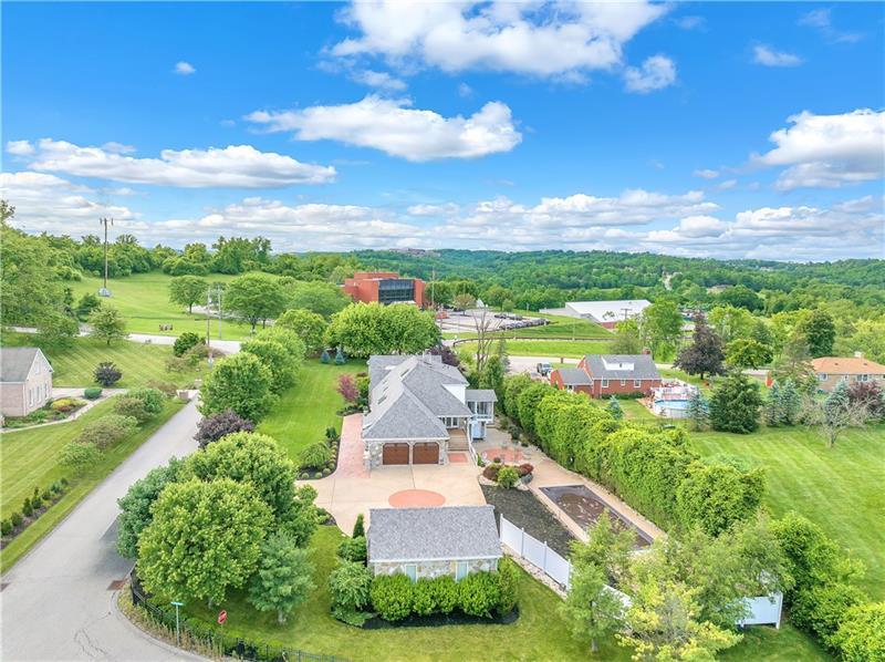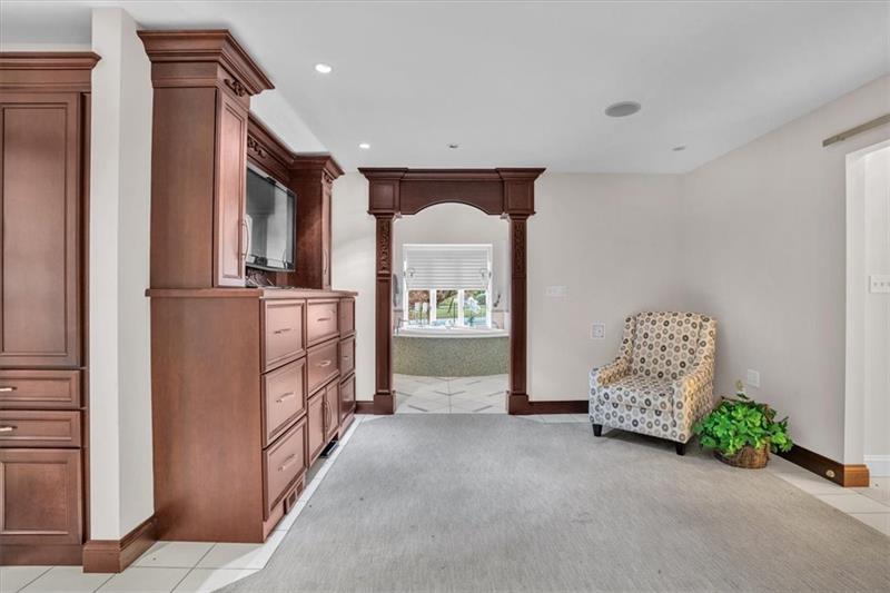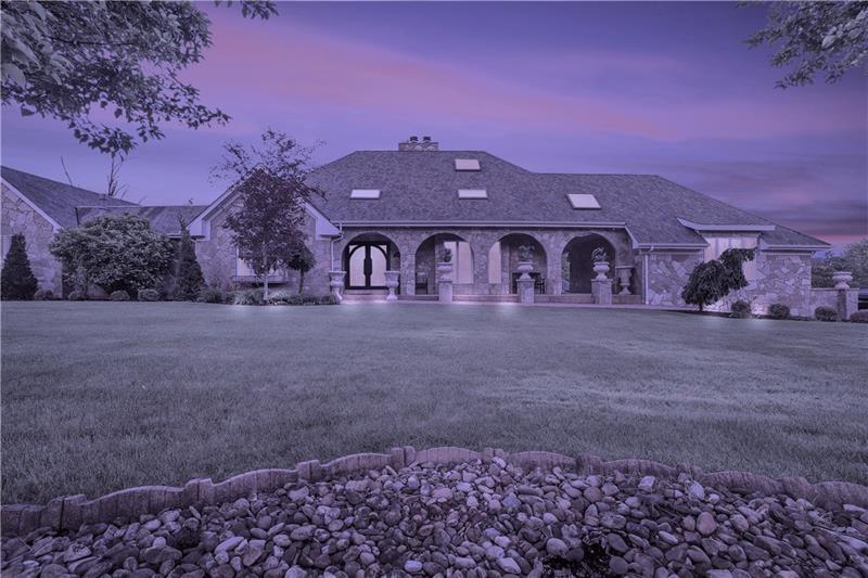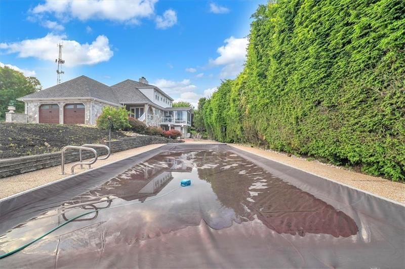 Welcome to this exquisite residence boasting a striking stone exterior, situated in the prestigious Towne Hall Estates neighborhood offering over 4,000 sf of luxurious living space. The first floor primary bedroom features an atrium, built-in fireplace and waterfall, electric blinds, 2 walk-in closets, 2 full showers: sauna/steam shower, & separate BR w/ soaking tub, shower, wc, heated flooring, first floor laundry. The kitchen features 6 burner Wolf gas stove, Sub-zero refrigerator, double granite counter on the island with copper sink. Step down into the sunroom flooded with light from wall to ceiling windows. Lower level: full bar, two refrigerators, martini shaped sink, two prep areas, laundry, three game/theatre/family rooms, one has a full size wall to wall movie screen, one has a fireplace & walk out to the outdoor pool area: full shower/ locker room. This is an exceptional luxury property!
