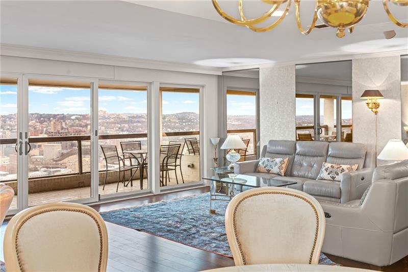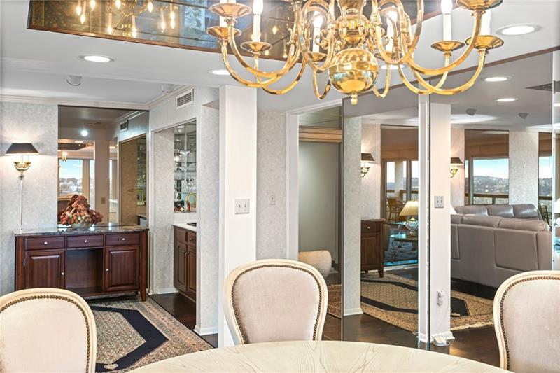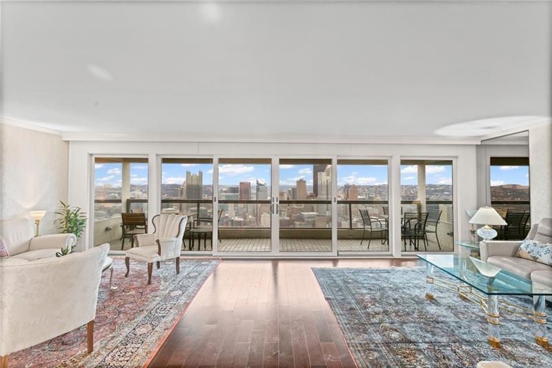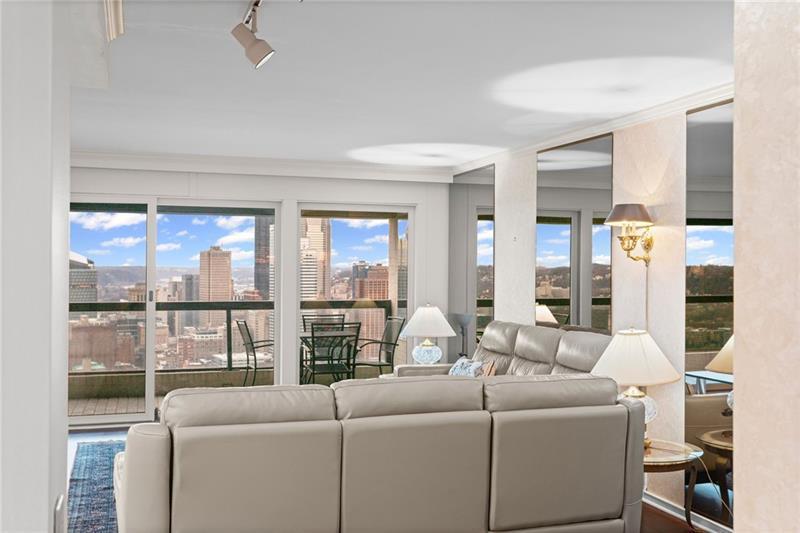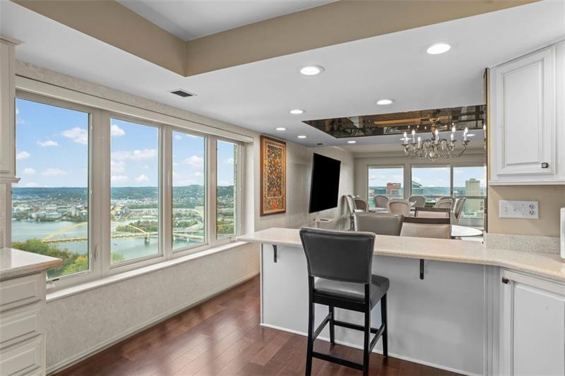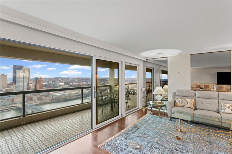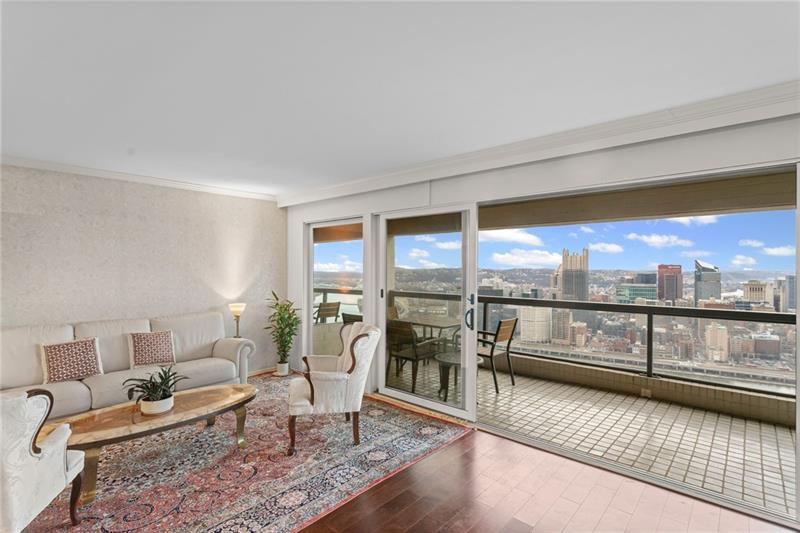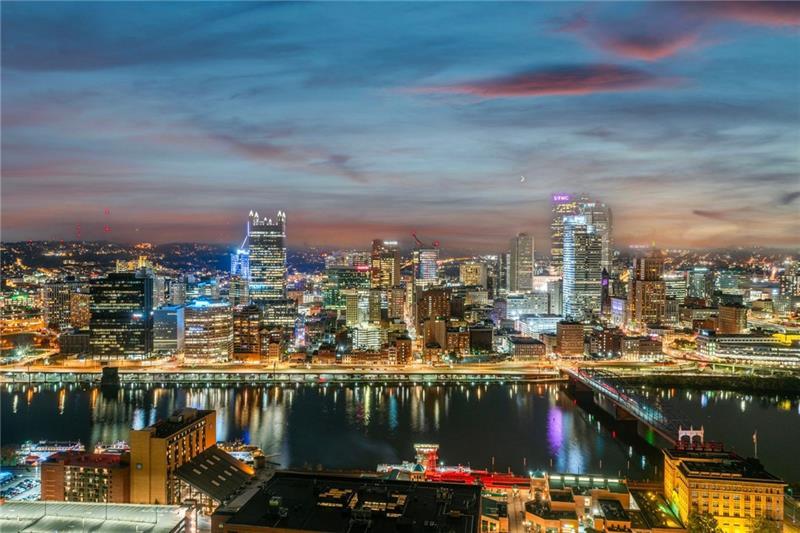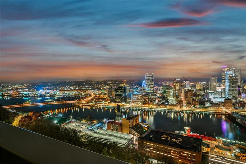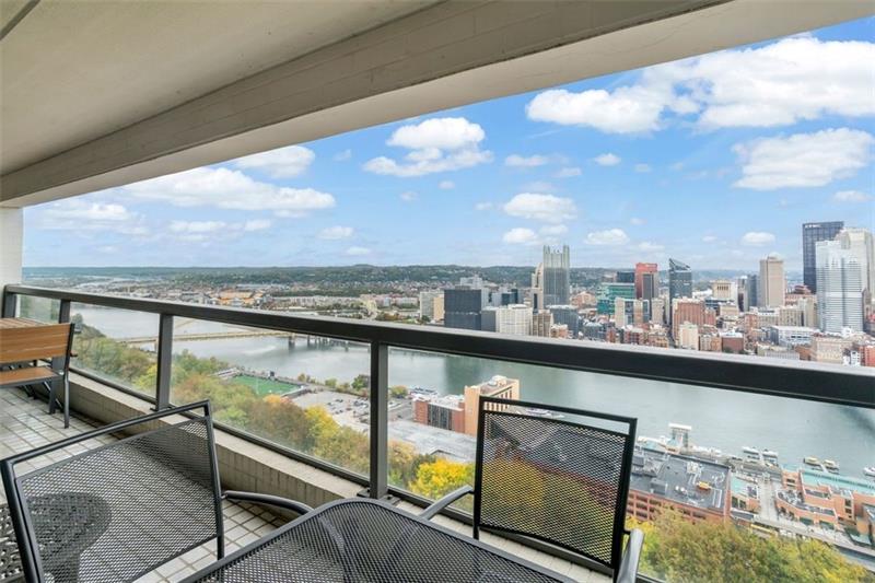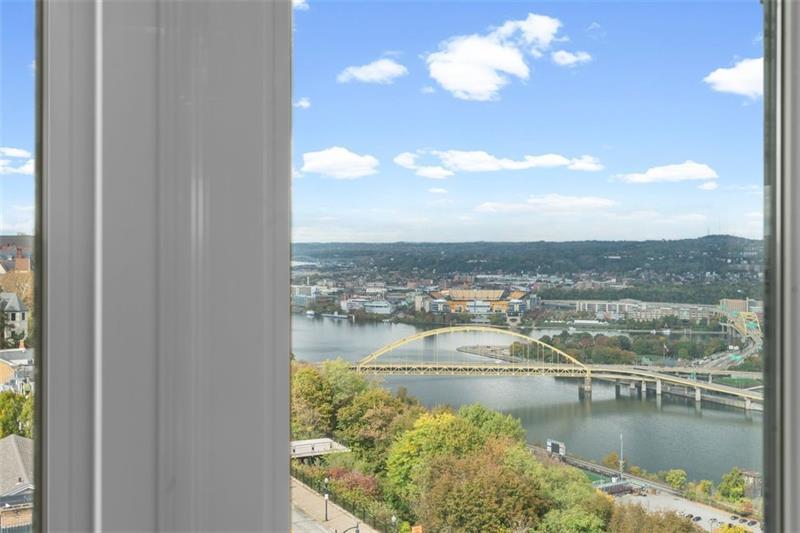 Experience luxury living at The Plaza at Grandview on Pittsburgh's Mount Washington! This spacious, recently updated condo showcases breathtaking panoramic views of the city skyline and river through walls of windows and from the private balcony. The open living and dining areas feature gleaming hardwood floors, elegant lighting, and abundant natural light, creating the perfect setting for both entertaining and relaxation. The kitchen offers modern cabinetry, stainless steel appliances, and ample counter space. A built-in wet bar enhances the ease of hosting guests. The primary bedroom boasts an ensuite bath with a steam shower and a walk-in closet. The family room features custom-built storage. Enjoy the convenience of in-unit laundry, deeded two-car parking, additional guest parking, a guest suite, a fitness center, and a residents' lounge"”all within a secure, professionally managed building. Stroll out your front door to shops, restaurants and the most gorgeous view in Pittsburgh!