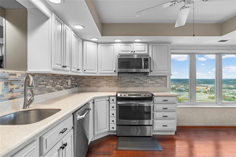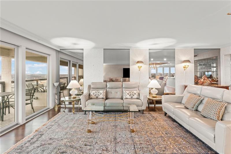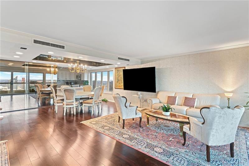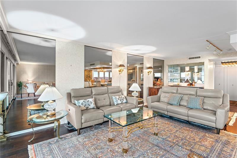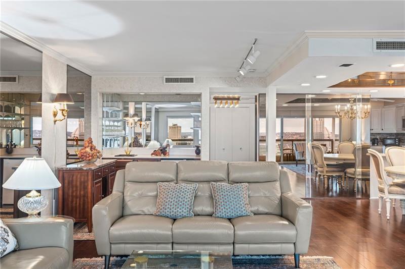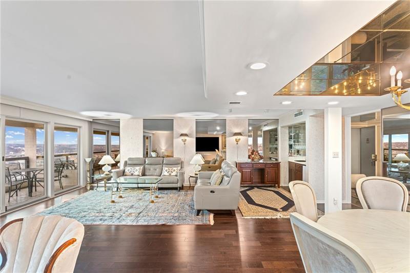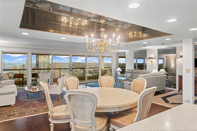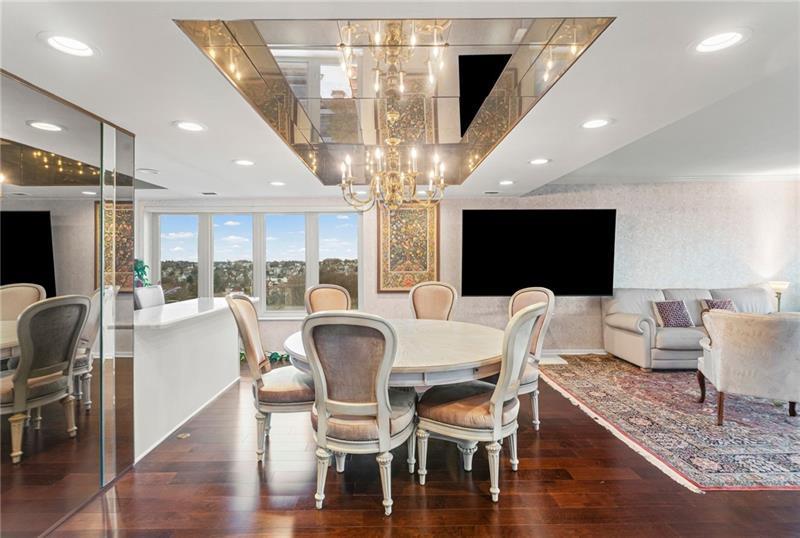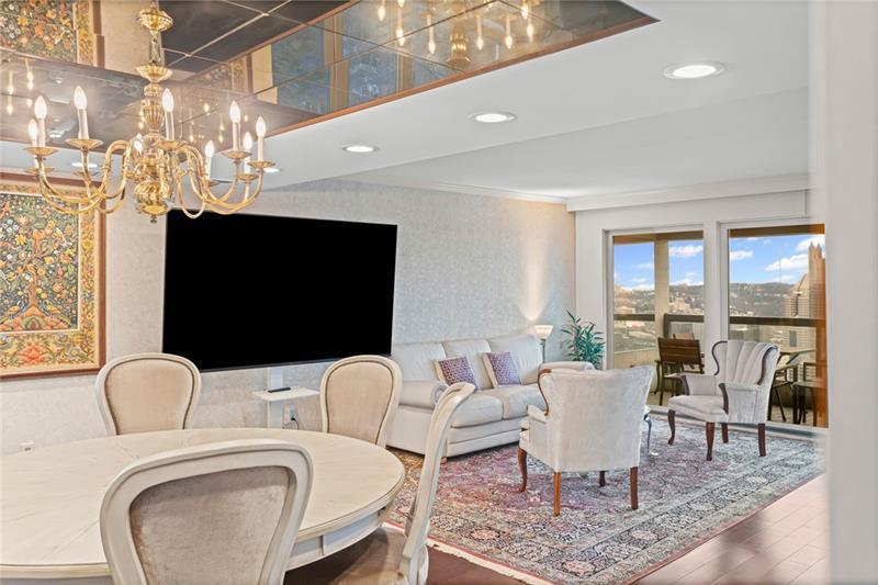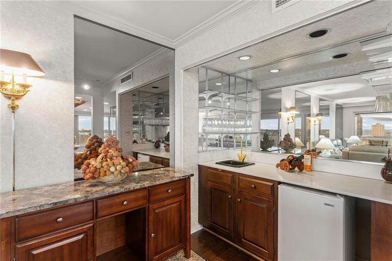 Experience luxury living at The Plaza at Grandview on Pittsburgh's Mount Washington! This spacious, recently updated condo showcases breathtaking panoramic views of the city skyline and river through walls of windows and from the private balcony. The open living and dining areas feature gleaming hardwood floors, elegant lighting, and abundant natural light, creating the perfect setting for both entertaining and relaxation. The kitchen offers modern cabinetry, stainless steel appliances, and ample counter space. A built-in wet bar enhances the ease of hosting guests. The primary bedroom boasts an ensuite bath with a steam shower and a walk-in closet. The family room features custom-built storage. Enjoy the convenience of in-unit laundry, deeded two-car parking, additional guest parking, a guest suite, a fitness center, and a residents' lounge"”all within a secure, professionally managed building. Stroll out your front door to shops, restaurants and the most gorgeous view in Pittsburgh!