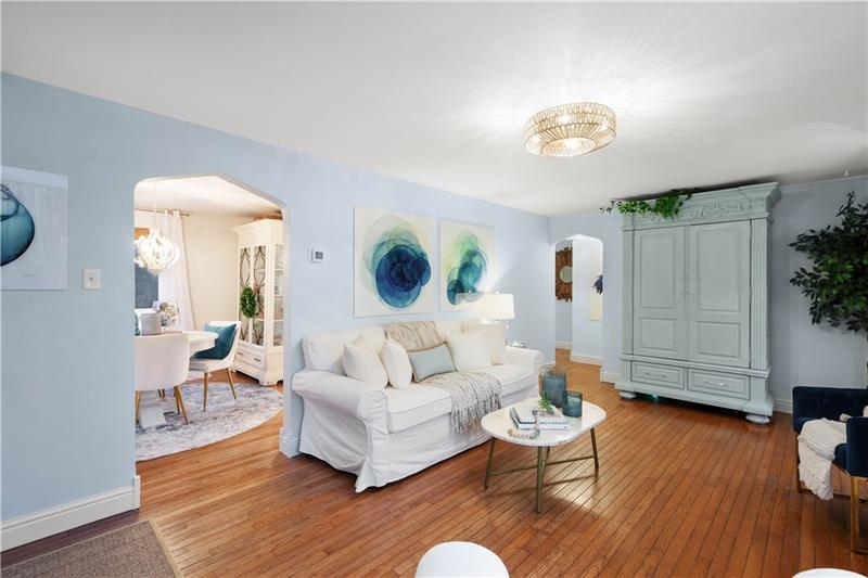 Thoughtfully improved throughout, this brick home offers classic character, surprising space, exceptional storage, and effortless livability. Every inch has been carefully considered and updated by the current owner, creating a home that feels intentional, composed, and quietly confident.Sun-filled living and dining rooms showcase original hardwood floors, architectural details, and a fireplace that naturally anchors the space and invites connection. The dining room easily accommodating everyday meals, large gatherings and extended celebrations. Throughout the home, the design feels deliberate, from the layout to the storage, a home that quietly takes care of you.The kitchen balances charm and performance with stainless steel appliances, a pantry with pullout shelving, multiple drawers within drawers, and a built-in spice cabinet that reflects thoughtful planning at every turn.The main level includes a bedroom with walk-in closet and updated full bath, offering exceptional flexibility. Upstairs, two additional bedrooms each feature large walk-in closets, along with a spacious walk-in hall closet rarely found in homes of this era. One of the upper-level bedroom includes an adjoining room ideal for a nursery, office, sitting area, or expanded suite, allowing the layout to adapt to meet your needs over time. Even the entry closet is walk-in sized, reinforcing just how intentionally storage has been integrated throughout.The lower level currently functions as a recreation space with laundry and storage, while offering clear potential to be easily finished for additional living area, office space, or work out studio. Outdoors, mature perennial gardens surround the home, thoughtfully designed to bloom beautifully from spring through summer with very little effort, plus evergreens that offer privacy & beauty year round. A tranquil pond, stone patio, and covered porch create a setting that feels peaceful, private, established, and deeply connected to the seasons. The home has been updated well beyond the surface, with significant improvements including windows, doors, HVAC, and more already completed. Set on a quiet corner lot with a true neighborhood feel, this Upper St Clair location offers ultra-convenient access to shops, restaurants, schools, the T, 19 & 79!