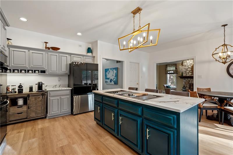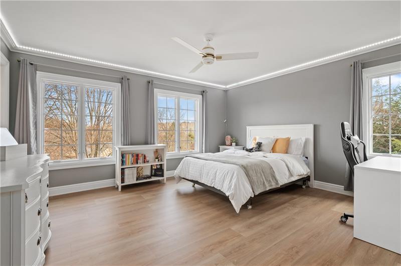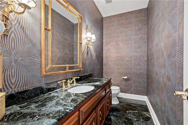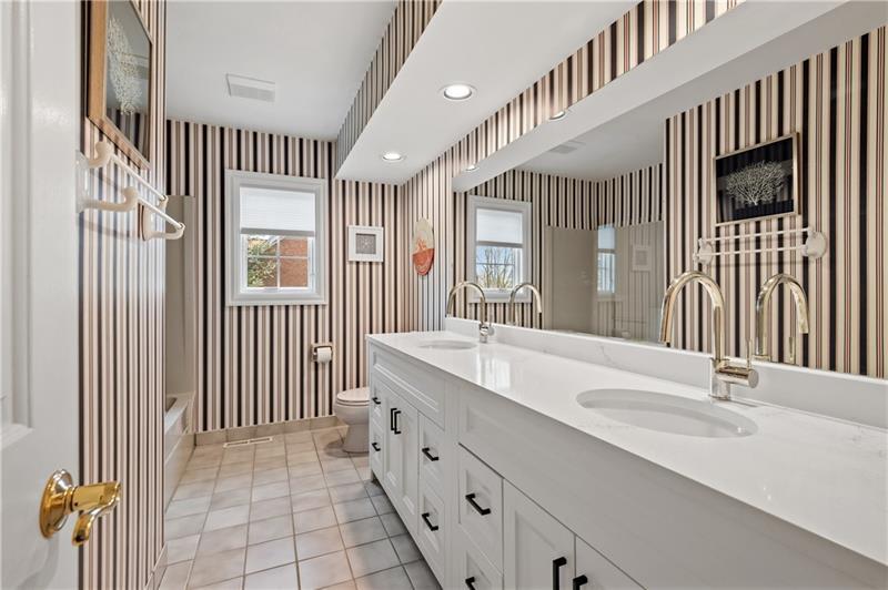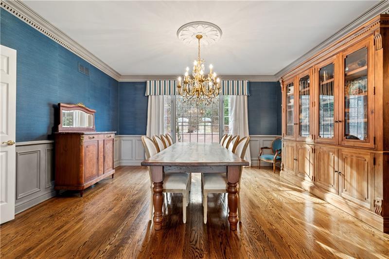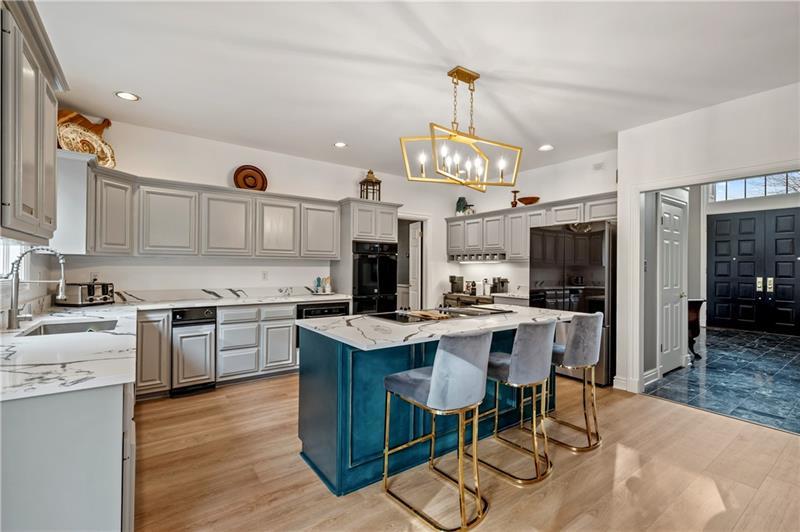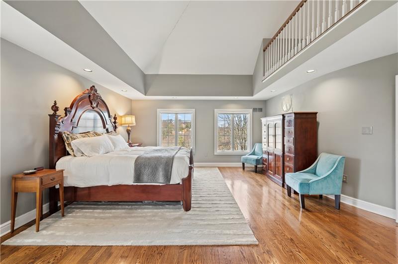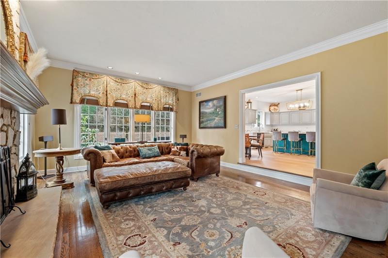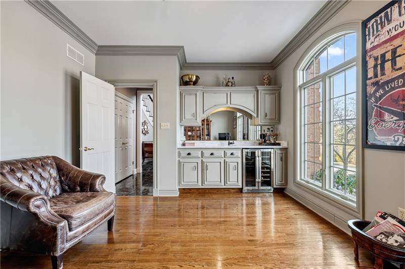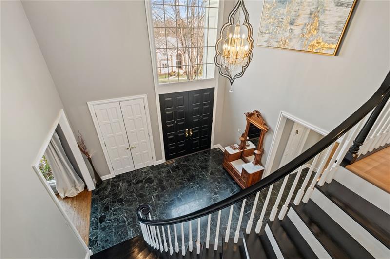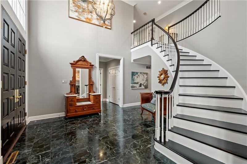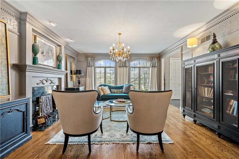 Professionally Designed for living well in the sought-after Thousand Oaks Neighborhood, this stunning colonial will captivate upon entry with its sweeping staircase, spectacular chandelier and marble tiled foyer. High ceilings, custom mouldings and five generous sized rooms adorn the main level, which includes a stately living room with fireplace, stunning dining room, large den/office with wet bar, sunken family room with stone fireplace, and an updated eat-in kitchen with quartz countertops, walk-in pantry, island seating and walkout to patio and private backyard. A large powder room and two coat closets complete the first floor. Primary Suite features a large walk-in closet, an incomparable bathroom retreat with luxury finishes including marble countertops, flooring, and shower tiles, custom cabinetry, cast iron slipper tub, crystal chandelier and barrel ceiling; the bedroom's vaulted ceiling leads to a private 25' x 22' loft with two walk in closets. Three additional bedrooms, two baths, linen closet and laundry room complete the upper level. Lower level features a large game room with wet bar, half bath, built-ins and three car garage. Some additional features include LVP, hw flooring and Pella windows. Award winning Upper St Clair School District and Streams Elementary.