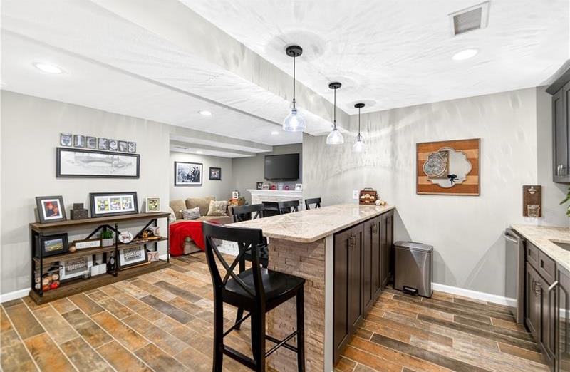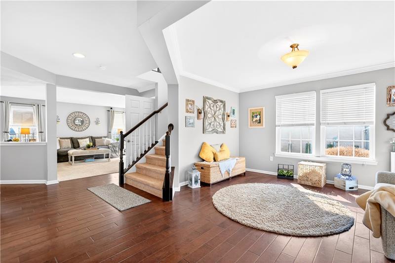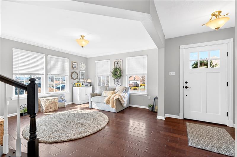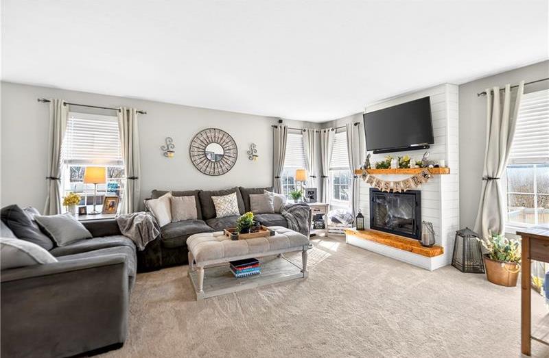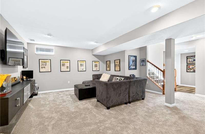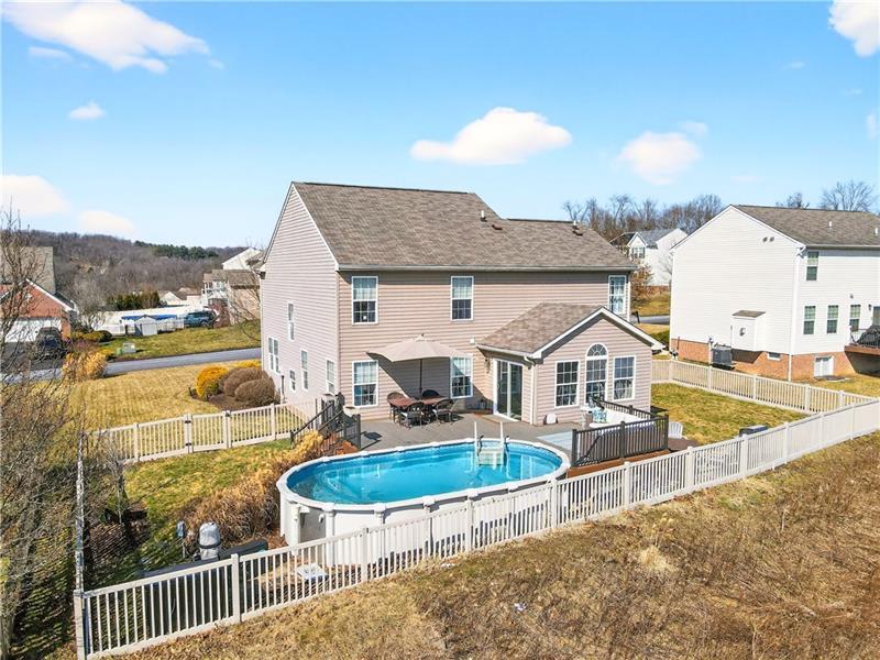 Welcome to this beautifully maintained 4-bedroom, 3.5-bath two-story home located in the desirable Patriot Pointe plan in Jefferson Hills. Built by Ryan Homes and featuring the popular Innsbruck Model, this home offers spacious living areas, thoughtful design, and excellent indoor-outdoor flow. The main level welcomes you with a versatile den/sitting room, perfect for a home office or quiet reading space. The open floor plan continues into a bright living room with an electric fireplace, creating a warm and inviting space that flows seamlessly into the kitchen, complete with granite countertops, maple cabinetry, and a large center island ideal for entertaining and everyday living. Just off the kitchen is a formal dining room with a door leading to the outdoor living space. Step outside to enjoy the composite deck overlooking the pool, fenced-in backyard, and stamped concrete patio, providing the perfect setting for relaxing or hosting gatherings. The main level also includes a half bath, laundry room, and convenient access to the two-car garage, along with newer hardwood flooring throughout much of the level. Upstairs, the spacious primary suite features vaulted ceilings and a private master bath, creating a comfortable retreat at the end of the day. Three additional bedrooms and a full hall bath complete the upper level. The finished lower level adds incredible living space and flexibility, featuring two separate family rooms, a gas fireplace, wet bar, and a full bathroom"”ideal for entertaining, game nights, or extended guest stays. Located in the West Jefferson Hills School District, this home offers a fantastic blend of space, comfort, and outdoor enjoyment in one of Jefferson Hills' popular communities.