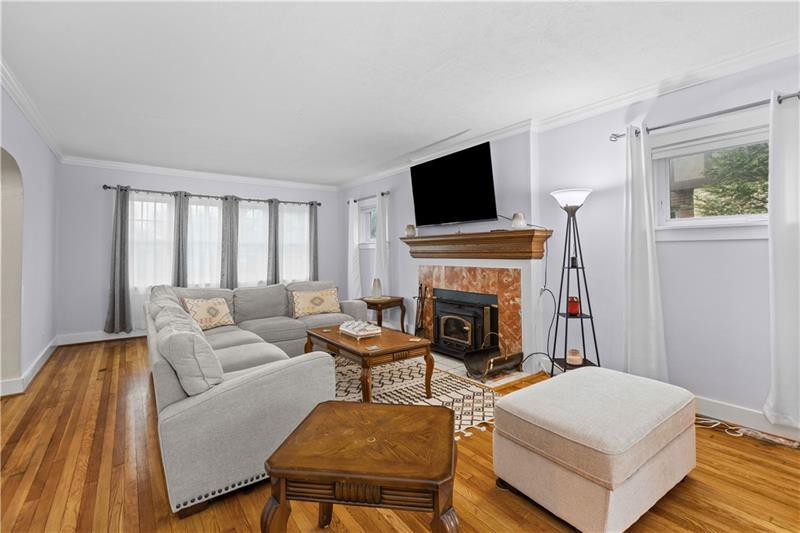 Classic 1928 Tudor charmer meets modern luxury in Mount Lebanon. This two-story, 4 bedroom, 4 bath residence has an exceptional primary owner suite featuring a loft style sitting-den area, walk-in closet and a huge private bath. The upstairs main bath has a separate shower, tub and double sinks. From the main entry step into a formal living room with wood-burning fireplace that opens to the sunroom. Beautiful hardwood floors and marble style tile floors throughout. A huge formal dining room for entertaining plus a second dining area for everyday meals. Convenient main floor powder room, and pantry closet. The heart of the home is an amazing great room with an open kitchen. A center island cooktop counter with hood vent, all appliances stay. French doors lead to the stone patio for easy outdoor living. Downstairs an industrial style game room with additional storage rooms. Laundry includes washer and dryer. The stunning full bath has a sauna room. A gas forced air, furnace, central air, +5 split units service the house. There is a tandem 2 car garage plus off street parking for 3 to 4 cars. Includes a shed and one year AHS Home Warranty. New Year, New Home.