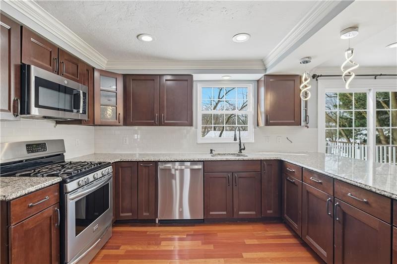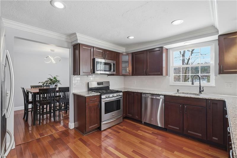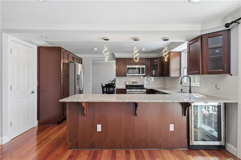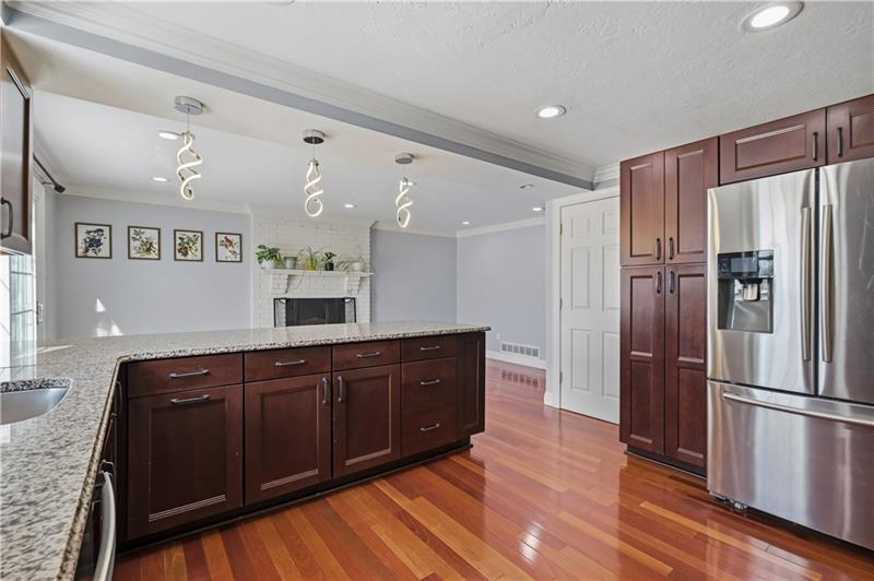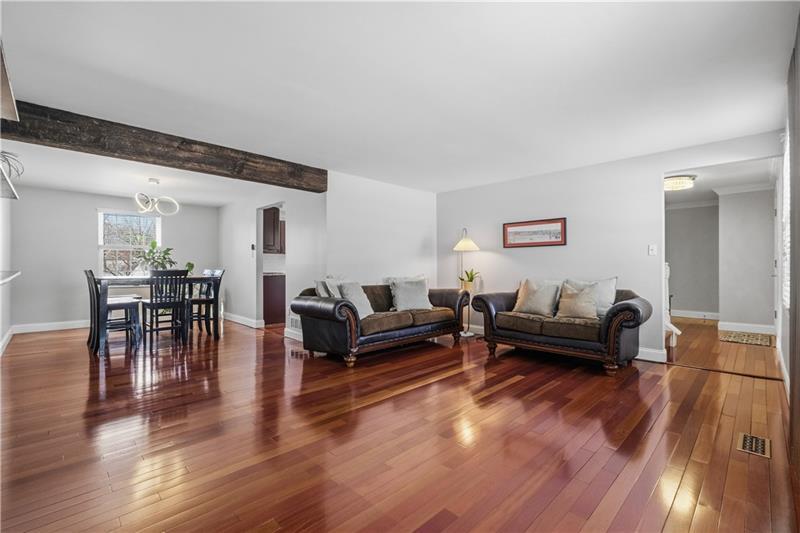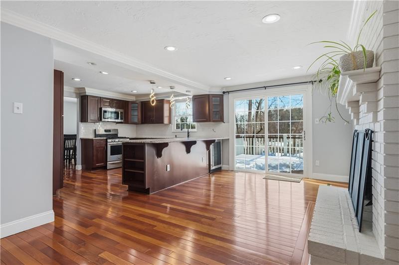 This home has it all! An inviting front porch welcomes you inside to gleaming hardwood floors and a bright, open layout. The beautifully updated kitchen features stainless steel appliances, including a beverage center, abundant cabinetry, and endless counter space, and opens to both the formal dining room and the family room with a cozy wood-burning fireplace. The dining room flows seamlessly into the oversized living room, creating an ideal space for entertaining. Natural light fills the home thanks to newer dual-pane windows. An updated powder room completes the main level. Upstairs, the spacious owner's suite offers dual closets and a private en-suite bath, while three additional large bedrooms share an additional full bath. The finished lower level features a game room with new LVP flooring and a laundry area. Walk out to the patio and conveniently access the backyard. Enjoy outdoor living on the large deck overlooking the yard, complete with a fire pit and storage shed. Highly rated Upper St Clair school district. Located in a friendly, social neighborhood just minutes from shopping, restaurants, and all the South Hills has to offer.