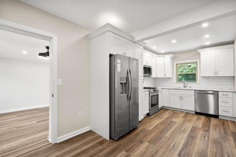 This beautifully updated home in Upper St. Clair feels brand new from top to bottom. Major upgrades include a new roof, windows, kitchen, bathrooms, flooring, painting, deck, lighting, & more! With 3 bedrooms and 2 full bathrooms, including a main-level bedroom & full bath for convenient one-level living, this home offers style, comfort, & functionality. Step through the new front door into a bright living room featuring a bay window, stone fireplace, & LED lighting. The stunning eat-in kitchen is sure to impress with soft-close cabinetry, quartz countertops & backsplash, & high-end stainless steel appliances. A newly added family room offers vaulted ceilings, climate control, & walkout access to a brand-new deck perfect for relaxing or entertaining. Upstairs, you'll find two spacious bedrooms & a beautifully renovated full bath with modern tile, heated mirror, and sleek vanity. The fully finished lower level provides versatile space ideal for a TV room, home office, play room or gym.