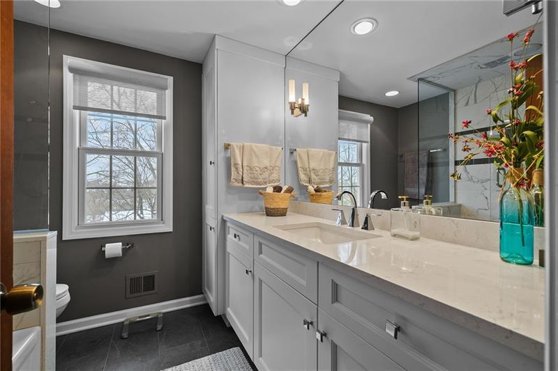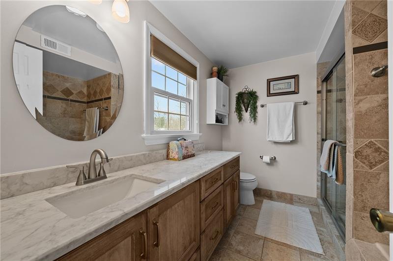 Situated in the highly sought-after Trotwood neighborhood of Upper St. Clair, this home offers a combination of features rarely found together"”exceptional curb appeal, a level entry, and a flat, fully fenced backyard. Room sizes throughout are notably generous, creating an open, comfortable feel. The main level features a beautifully flowing layout with a sunken living room, formal dining room, updated eat-in kitchen, large family room with picture window and fireplace, private home office, laundry room, and powder room. A covered deck with cathedral ceiling and skylights, located just off the kitchen, provides extension of the living space. Upstairs are four bedrooms and two updated full baths, including a spacious primary suite with walk-in closet, dressing area, and full en-suite bath. The finished walk-out lower level offers a large gameroom with direct access to the backyard, along with an attached two-car garage. A home like this, in this location, doesn't come along often.