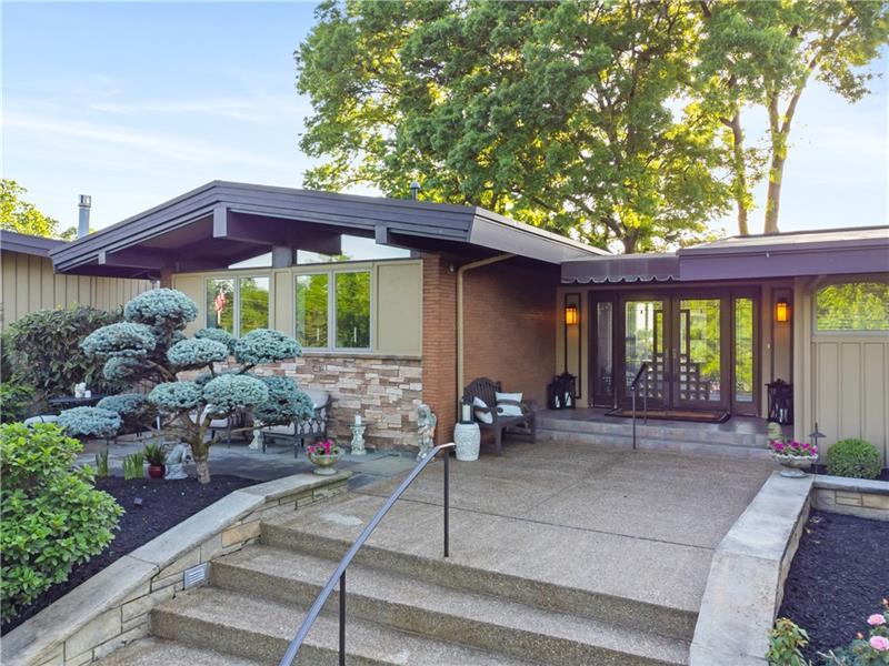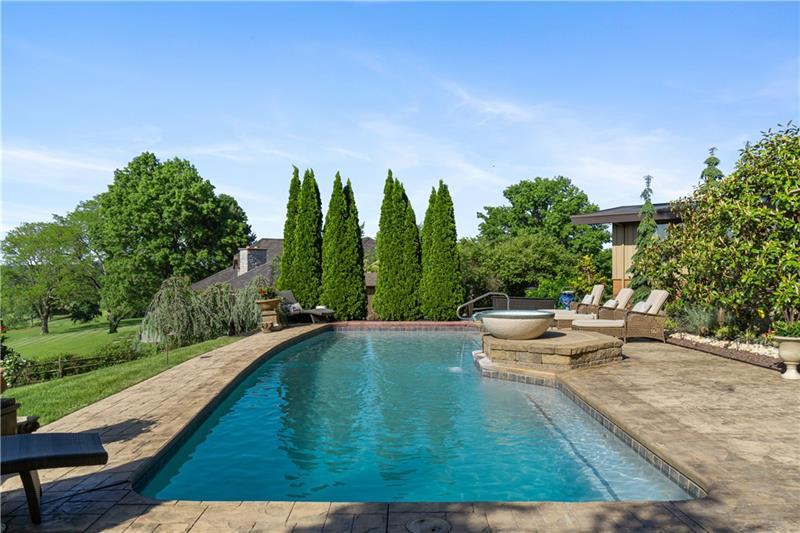 Perched overlooking St. Clair Country Club, this luxurious listing offers unparalleled views. Inspired by the iconic architectural style of Frank Lloyd Wright, the home exudes sophistication. Set on over an acre of land, the home boasts professionally landscaped gardens creating a picturesque setting for entertaining. Step down to the saltwater pool with stunning westerly views of the golf course and front-row seats for 4th of July fireworks. The home's open floor plan effortlessly blends living, dining, and kitchen areas, creating an optimal living/entertaining footprint. A copper fireplace serves as a focal point in the living area, adding warmth and charm. Expansive windows flood the interior with natural light. Retreat to the master suite with gas FP, multiple walk-in closets and a vast bath. The LL game room, with wet bar/home theater, provides the perfect setting for entertaining or family nights. Enjoy working from home in the beautiful office space overlooking private patio.