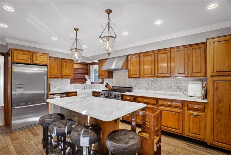 This iconic stone cape cod is situated on a woodsy private lane in Mount Lebanon offering exceptional space, thoughtful updates, and timeless charm. This expansive 5-bedroom home features 3 full baths and 2 half baths, including two luxurious primary suites"”one conveniently located on the main floor and another upstairs. The updated kitchen is beautifully appointed with honed marble countertops and a stone wood burning fireplace. A sun-filled living room provides warmth and character, while the adjacent side porch offers the perfect spot for morning coffee. The spacious family room showcases oversized bay windows, custom built-ins, and a wet bar"”ideal for gatherings. The main-level primary suite is a private retreat, complete with generous closets, a separate vanity area, and a spa-like bath featuring a soaking tub. Upstairs, you'll find four additional nicely sized bedrooms, including a second ensuite with access to a private balcony. The finished lower level has been beautifully remodeled, creating flexible space for a game room, gym, or media area. Outdoor living is just as impressive, with a level yard, swing set, and a stunning stone fireplace perfect for entertaining. A two-car garage plus additional private parking across the street add convenience to this exceptional property. A rare opportunity to own a spacious, move-in-ready home on one of Mount Lebanon's private lanes.