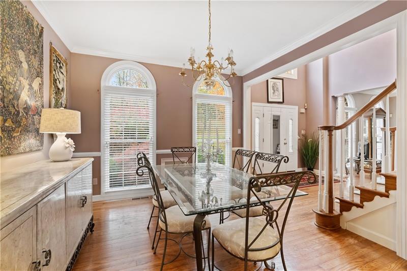 Elegant home wiith beautifully designed rooms and amenities. The two story entry leads to a private living room, formal dining room, an office, a gorgeous sun room and a spacious gormet kitchen with an island, desk area, pantry and dining area all with overhead lighting for emphasis. Sliding doors lead to an extensive deck with a spectacular view. The family room is highlighted by a vaulted ceiling, fireplace and balcony. There is a powder room in the hallway. Excellent home for entertaining. The upstairs has four bedrooms and two full baths. The master bedroom is eye opening with such a vast area having two walk in closets. The bathroom has a glass enclosed shower, oversized jet spray tub, and much more. A spacious gameroom plus several rooms downstairs include another office. There is also room here for a 5th bedroom. The office has a bookcase along a wall in the basement and there is one upstairs.