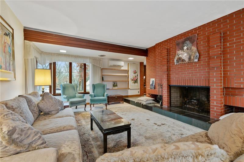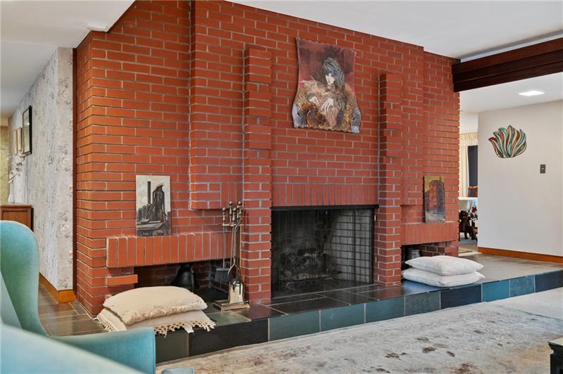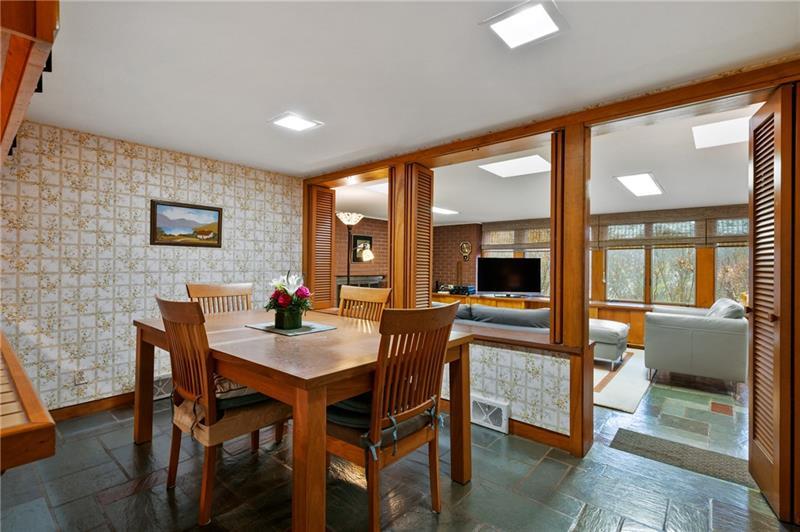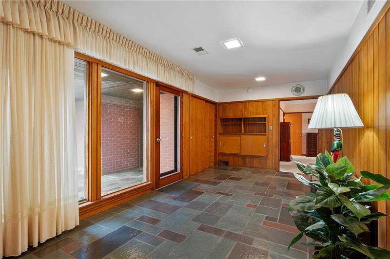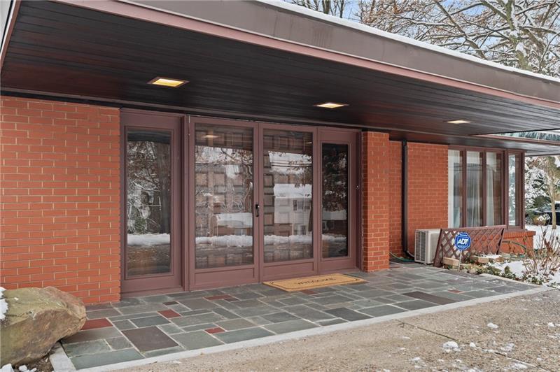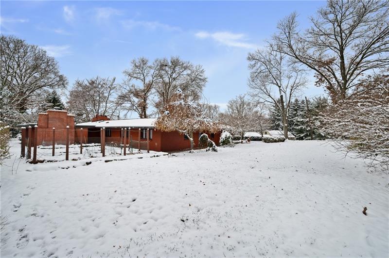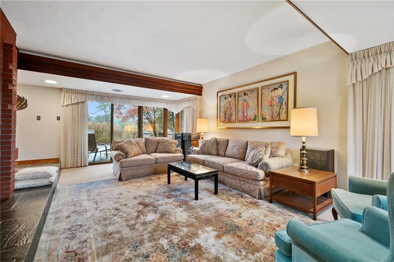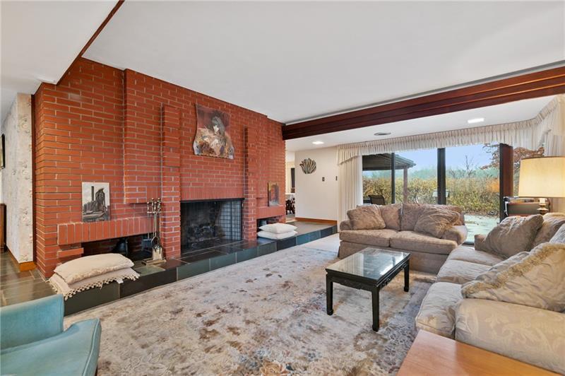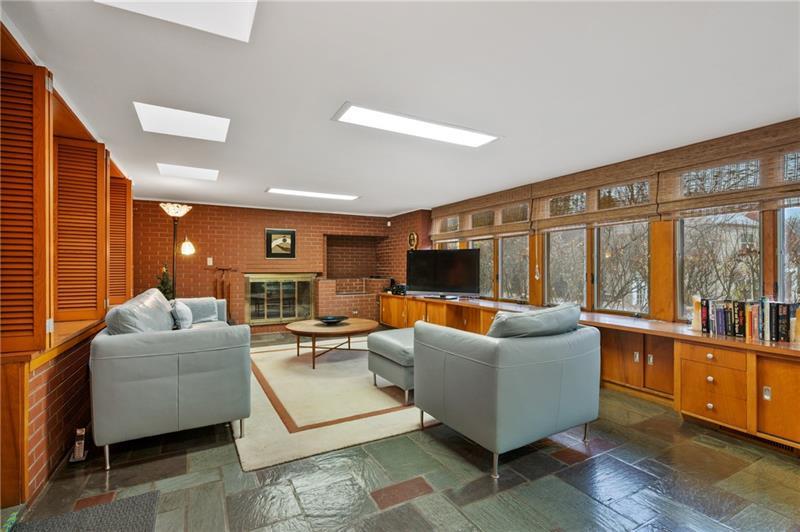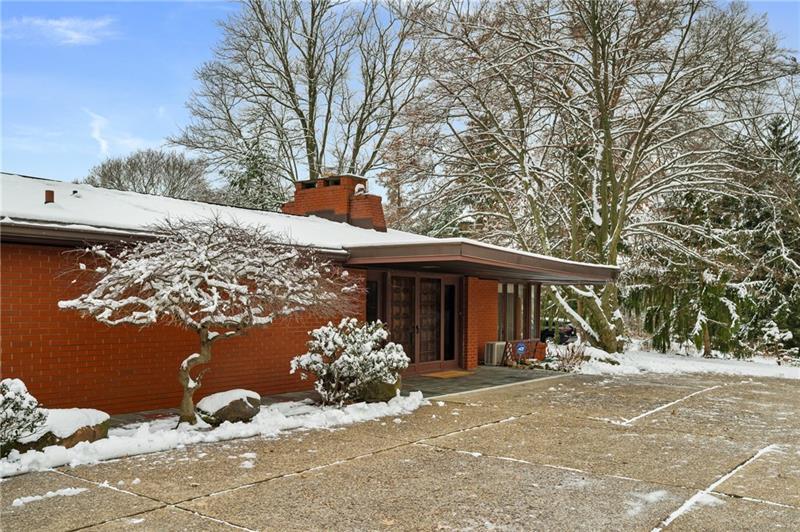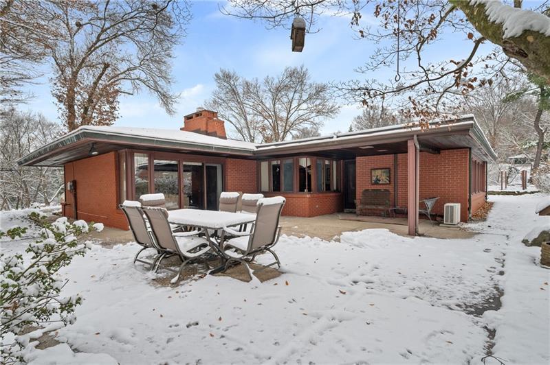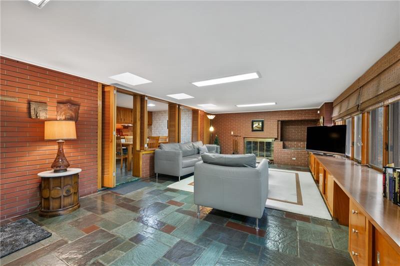 Situated on over half an acre, this sprawling Frank Lloyd Wright-inspired Usonian ranch delivers more than 3,100 sq ft of true one-level living! Slate floors connect the outdoors in through solid multi-panel entry doors framed by wide sidelights. The step-down living room is anchored by a dramatic floor-to-ceiling brick fireplace & wrapped in tall windows that continue into the dining room, creating a visual connection to the patio & professionally landscaped yard. The kitchen has an efficient layout & features original California birch cabinetry. The breakfast area opens to a spacious family room with a 2nd brick fireplace, low-slung built-ins, & even more windows! The generous primary ensuite, 2 additional bedrooms & 2nd full bathroom are tucked away & adjacent to an inviting den with paneled walls that walks out to the 2-car attached garage. Closet storage is remarkable! Minutes to shopping, restaurants, parks/trails, & the USC Community & Rec Center. Convenient to Rt 19 & 79.