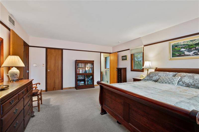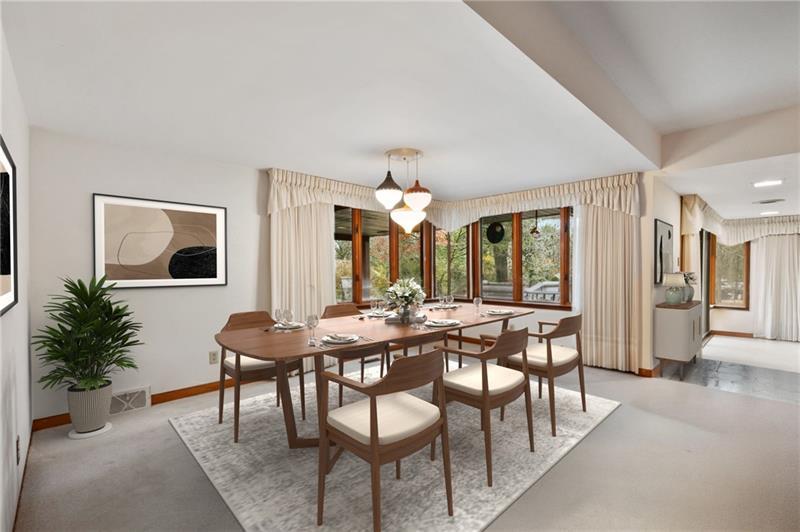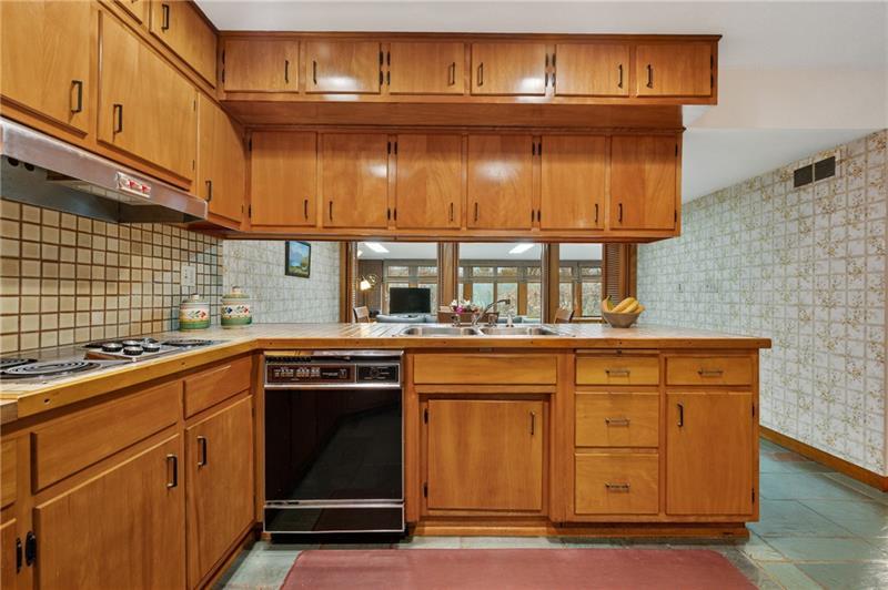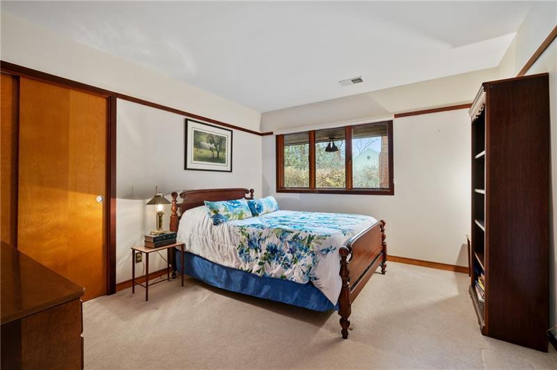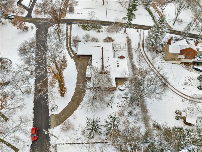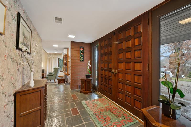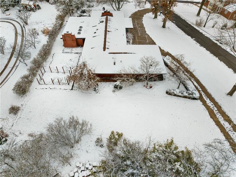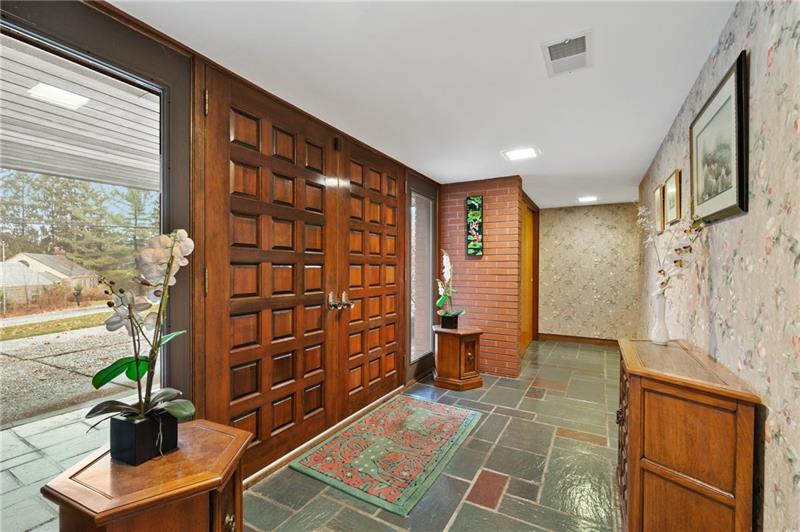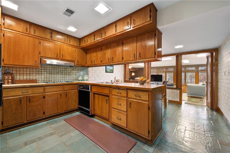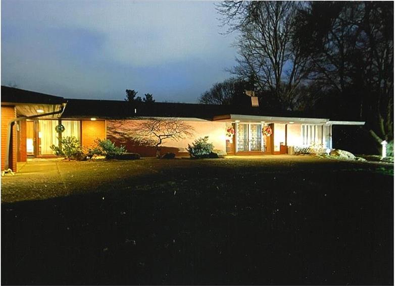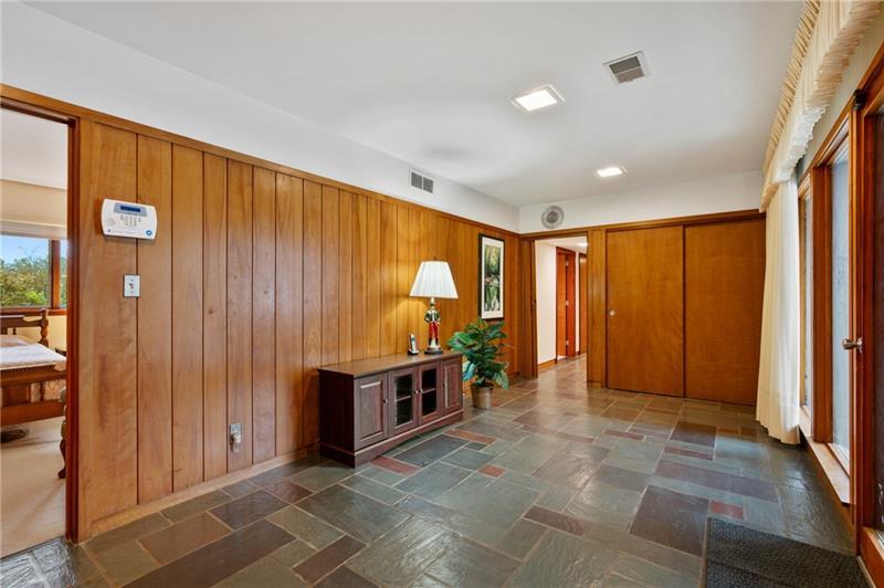 Situated on over half an acre, this sprawling Frank Lloyd Wright-inspired Usonian ranch delivers more than 3,100 sq ft of true one-level living! Slate floors connect the outdoors in through solid multi-panel entry doors framed by wide sidelights. The step-down living room is anchored by a dramatic floor-to-ceiling brick fireplace & wrapped in tall windows that continue into the dining room, creating a visual connection to the patio & professionally landscaped yard. The kitchen has an efficient layout & features original California birch cabinetry. The breakfast area opens to a spacious family room with a 2nd brick fireplace, low-slung built-ins, & even more windows! The generous primary ensuite, 2 additional bedrooms & 2nd full bathroom are tucked away & adjacent to an inviting den with paneled walls that walks out to the 2-car attached garage. Closet storage is remarkable! Minutes to shopping, restaurants, parks/trails, & the USC Community & Rec Center. Convenient to Rt 19 & 79.