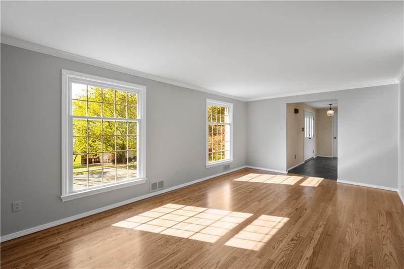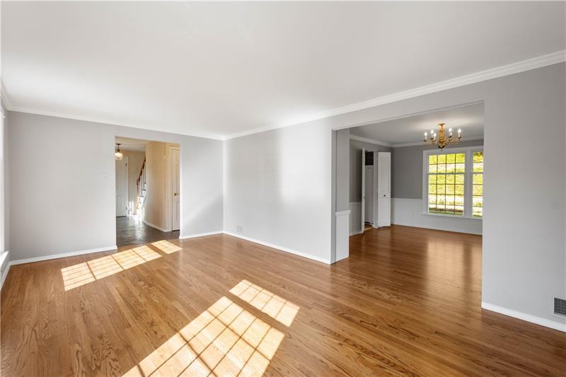 Charming Dutch Colonial in desirable Trotwood Hills, Upper St. Clair! This 4-bedroom, 2.5-bath home features newly refinished hardwood floors, a welcoming living room, formal dining room, and a spacious family room with gas fireplace. The bright sun porch overlooks the beautifully landscaped yard, perfect for relaxing. The eat-in kitchen offers plenty of space for casual dining. Upstairs, the large primary bedroom with private ensuite is joined by three additional spacious bedrooms and a full hall bath. The partially finished basement adds flexible space for a game room, gym, or office. Additional highlights include a 2-car integral garage, fresh landscaping, and great curb appeal. Conveniently located near schools, parks, and shopping, this home blends classic charm with modern comfort.