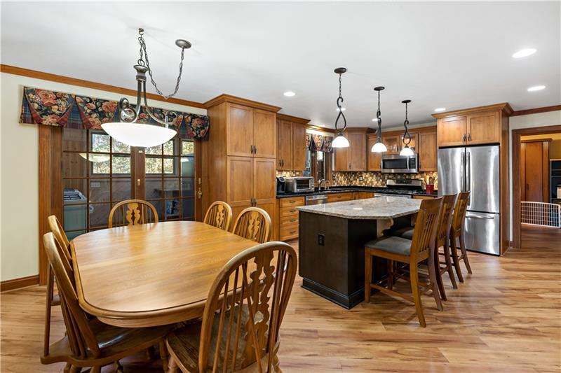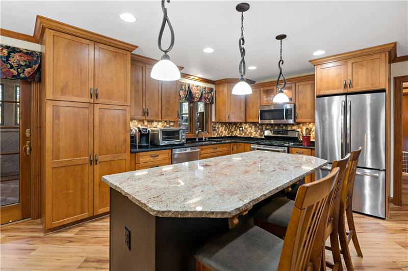 Welcome to 191 Meadowfield Lane "” a stunning custom brick home at the end of a quiet cul-de-sac, surrounded by mature trees and timeless elegance. The open-concept main floor showcases vaulted wood ceilings, expansive windows, and warm natural light throughout. The chef's kitchen features granite countertops, custom cabinetry, stainless steel appliances, and a large island perfect for gatherings. Enjoy seamless flow into the spacious living and dining areas, ideal for entertaining. The primary suite offers vaulted ceilings and serene views, while the finished walk-out lower level includes a second full kitchen, bar, and built-ins"”perfect for guests or game nights. Relax outdoors on the private deck overlooking a beautifully landscaped yard. A rare combination of craftsmanship, comfort, and charm"”just minutes from shops, schools, and parks.