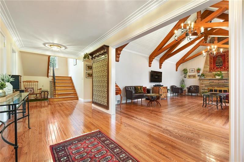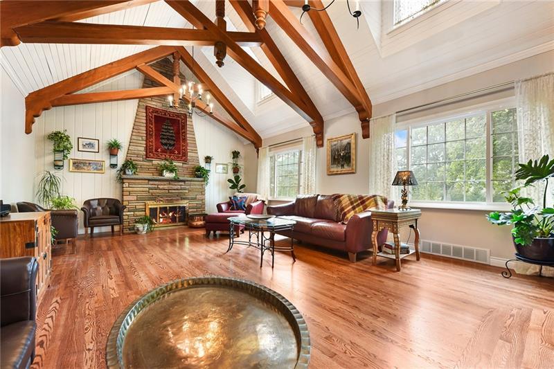 Discover a rare one-acre retreat in one of USC most coveted neighborhoods near the high school! This timeless property is nearly 5,000 sq.ft. and blends refined craftsmanship with livable luxury. Inside, dramatic vaulted ceilings with exposed beams, three fireplaces, and walls of windows fill the home with warmth and light. The remodeled kitchen impresses with quartz counters, double ovens, two dishwashers, and wine fridge. A main-level primary suite offers convenience and serenity. This layout allows you to entertain in the grand living or family room and host elegant dinners in the large dining room. The lower level adds a game room with bar, fireplace, and flexible gym/music/guest room. Outdoors, enjoy your private oasis with brick walkways, lush gardens, and a heated in-ground pool. A cute gazebo could be transformed into a future pool bar or bungalow. A rare opportunity to own a sprawling estate plus a convenient walking path that leads to the USC high school in under 10 minutes.