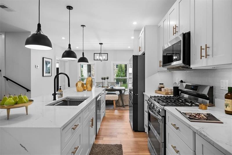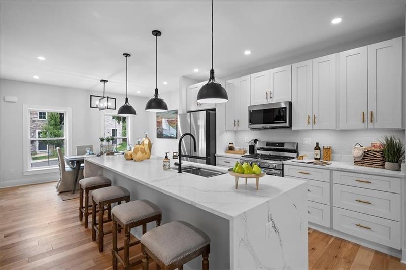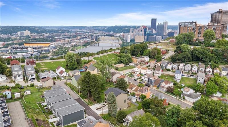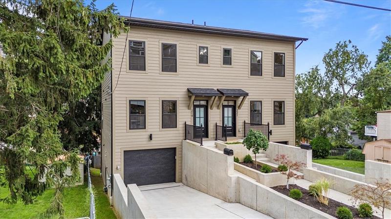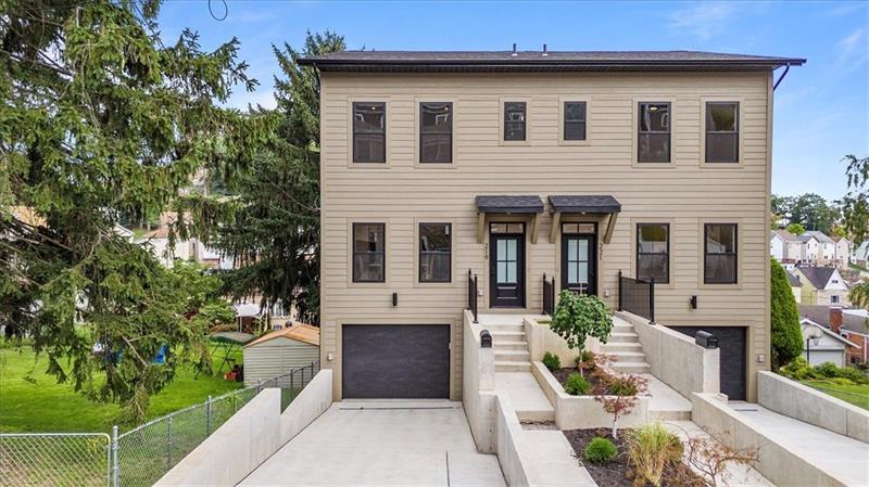 Experience luxury living in this stunning Mt. Washington townhome with high end finishes just steps from Grandview. Hardwood floors flow throughout the open-concept layout, featuring soaring ceilings and abundant natural light. The chef's kitchen offers waterfall granite countertops, stainless steel appliances, a spacious island with seating, and a large pantry. The sunken living room includes a fireplace, towering windows, and sliding doors that open to a private balcony. Upstairs, the primary suite features a spa-like en suite with dual vanities and a walk-in glass shower. A second spacious bedroom with en suite and walk-in closet, plus an upstairs laundry room, add convenience. The lower-level junior suite includes a private full bath, walk-in closet, and access to a second balcony leading to a fenced yard. With refined finishes, thoughtful design, and unbeatable location, this townhome is an exceptional offering in one of Pittsburgh's most desirable neighborhoods.