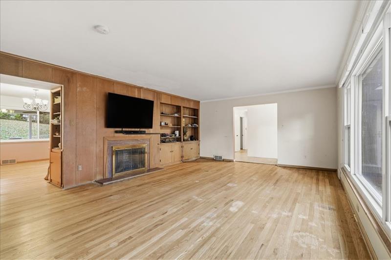 Welcome home to 2218 Country Club Drive in Upper St Clair. This 3 bed, 3 bath home is ready for its new owner. As you pull up the first thing you'll notice is the new, bold, ruby red metal roof. Then you'll love the privacy that comes with living on Country Club Drive. Next you'll head up to the covered front stoop, which protects your Amazon deliveries! Step inside to find HW floors throughout. A large living room has a gas fireplace & built-ins. That room wraps around to the dining room & kitchen. The eat-in kitchen has tons of cabinet space & granite counters. Head down the hall to find a primary suite with private full bath. Bedrooms 2 & 3 are also a good size with good closet space. The lower level is MASSIVE. You have a game room with another gas fireplace, multiple storage rooms, a laundry room, and another full bath! Outside you have a large patio with both covered & uncovered space. All this is located just minutes from the South Hills Village mall & easy access to Pittsburgh!