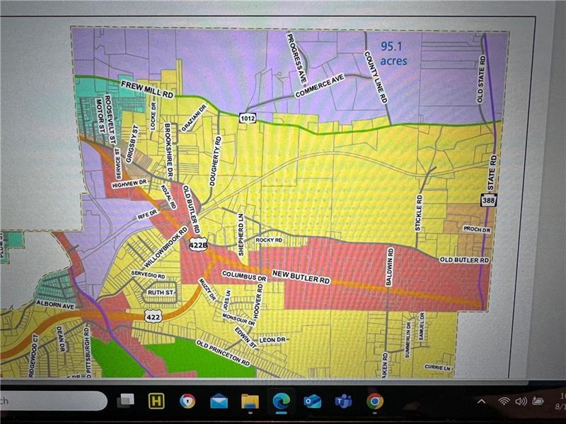 This property has frontage on Frew Mill, County Line and Fairground roads. The farm house with 95.1 acres fronts on County Line and has an older farm house, barn and some outbuildings. All of the buildings are in bad condition. Some of the property is directly across from the industrial park on Commerce Drive. The property on Fairground is 28.22 acres, is zoned agricultural, and is in Hickory township. The property on Frew Mill and County Line is zoned industrial. See zoning maps attached and drive by this gorgeous property. Close to all major highways including rtes 422, 19, and 79! So many business opportunities!