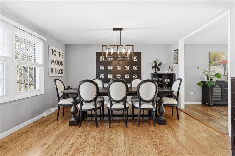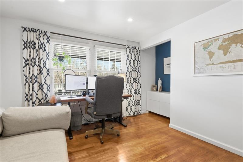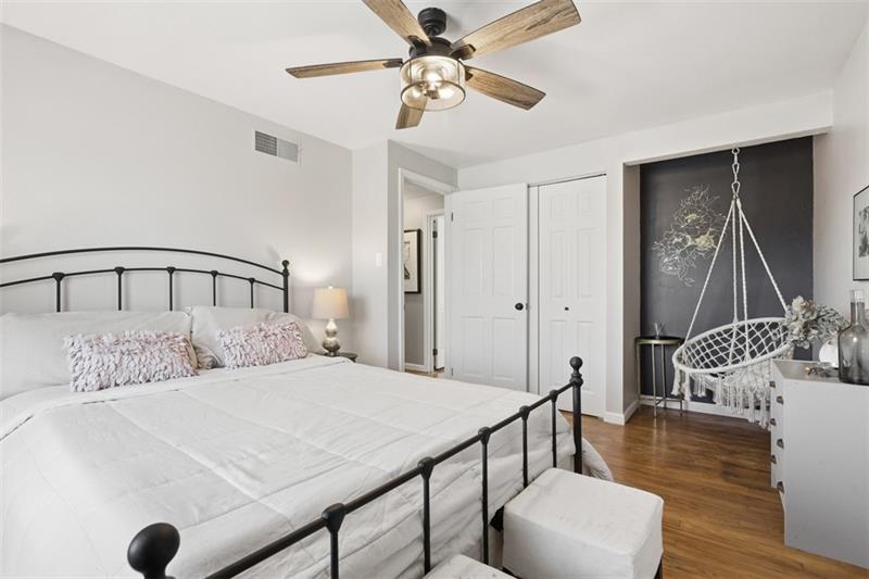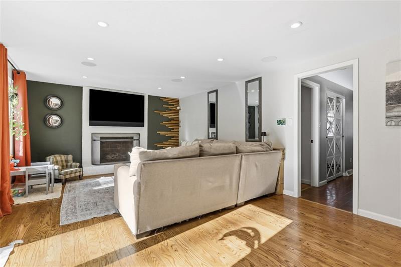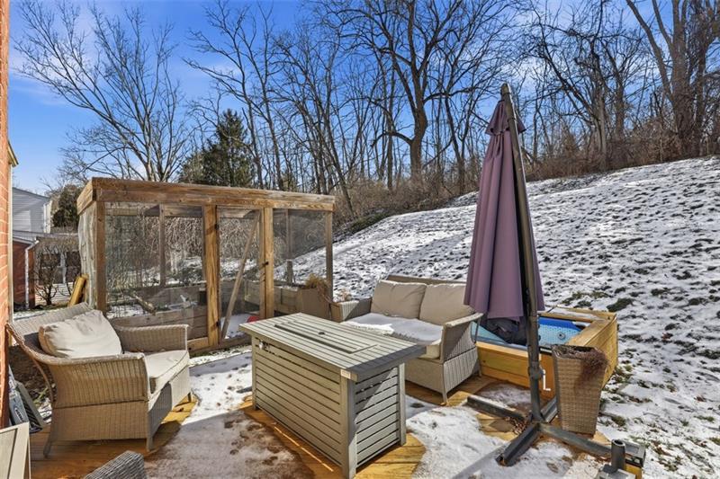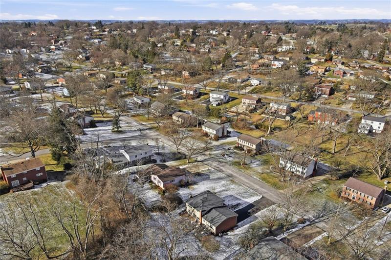 Updated Upper St. Clair residence offers 4 bedrooms, 2.5 baths, and over 2,000 square feet of versatile living on a 0.25-acre parcel. The inviting mid-century home opens with a proper foyer, where a coat closet, powder room, and flexible first-floor bedroom establish thoughtful functionality. Sliding glass doors teasing backyard views flood the family room with light, anchored by hardwood floors and a gas fireplace. Endless features in the renovated kitchen include stone countertops, center island, breakfast bar, and stainless appliances, while the adjoining dining room easily accommodates gatherings. Upstairs, two comfortable guest bedrooms with substantial closets share an updated hall bath. The headliner primary suite flaunts dual closets with built-in storage systems and an ensuite bath. Downstairs, the lower level expands the home's versatility with a custom bar, dedicated fitness area, and tucked-away office nook. Enjoy deck access and a screened garden enclosure in the yard, backing to private wooded space. Located 0.7 miles from Washington Road businesses, 1.5 miles from Upper St. Clair High School, Township Library, and St. Clair Country Club, and 11 miles from Downtown Pittsburgh.