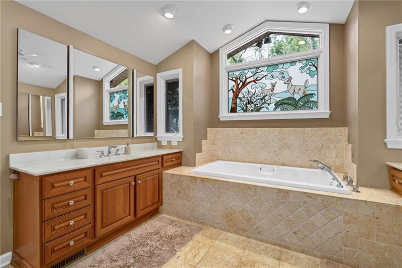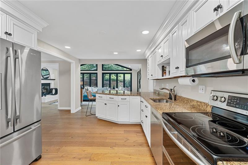 Welcome to 18th-fairway living at St. Clair CC. This upgraded bi-level opens into a spectacular kitchen + great room "” perfect for entertaining. A wall of windows showcases manicured grounds and a glowing glass-stone fire pit. An A-frame patio leads you directly into the master suite. The kitchen features granite counters, stainless appliances, and a breakfast bar. Wide-plank oak flooring with walnut peg detail flows through the living and dining rooms. All bedrooms and baths have Pella windows with built-in shades. The master suite offers a cedar-lined closet, an organized walk-in, and a spa bath with heated jet tub + glass shower. On the lower level: roomy den with a wood-burning fireplace, 4th bedroom, powder room, laundry, and three-car tandem garage. With all-new HVAC, updated systems, and a 2015 roof, this home is essentially move-in ready. Outdoor amenities include a flagstone patio, fire pit, and privacy landscaping "” ideal for sunset gatherings on a championship fairway.