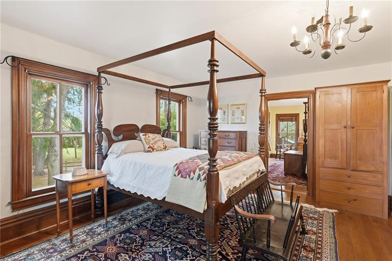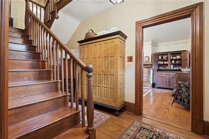 Step back in time with one of Upper St. Clair's heritage homes, beautifully restored over the past 50 years to preserve its authentic character and craftsmanship. Nestled on a serene and private 1.7-acre setting, this timeless property boasts period details throughout- seven fireplaces, beautiful hardwood floors, two staircases, hand-painted murals and lighting thoughtfully selected to compliment the home's era. The spacious main level features a family room with woodburning fireplace, a dining room with porch access, a formal living room and kitchen with original built-in cabinetry. Take either staircase upstairs to discover four bedrooms, highlighted by the primary suite with private dressing room. A charming, detached summer kitchen offers endless possibilities for guest space, entertaining or creative projects. Outside, enjoy time on the covered porch, side patio or in the expansive backyard. A wonderful opportunity to own a piece of history.