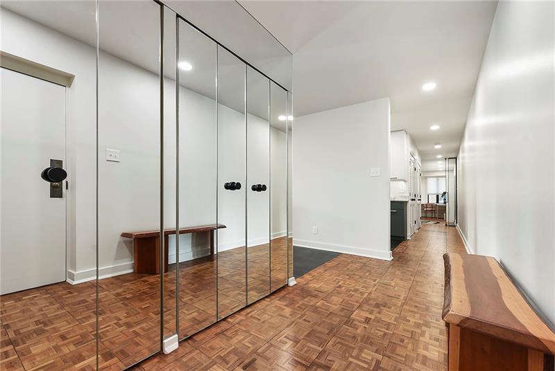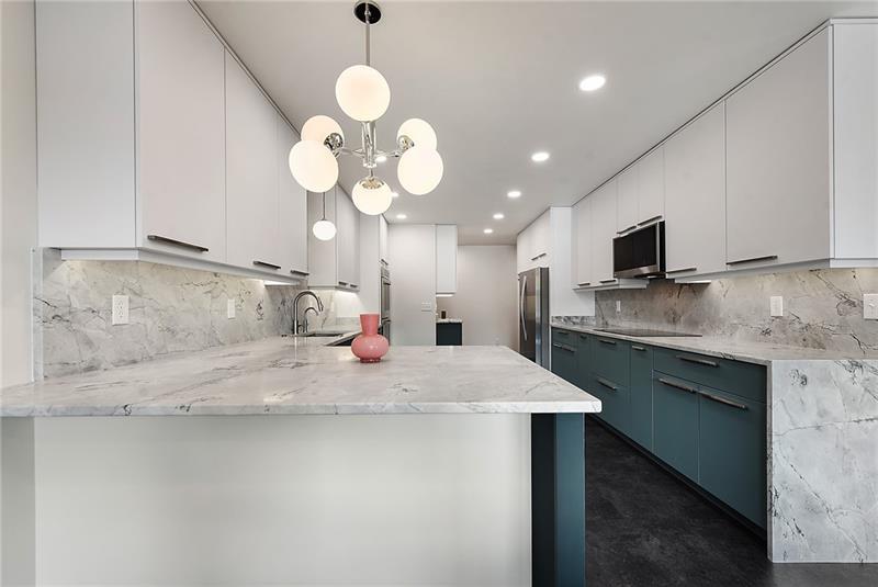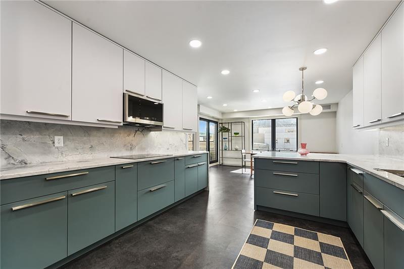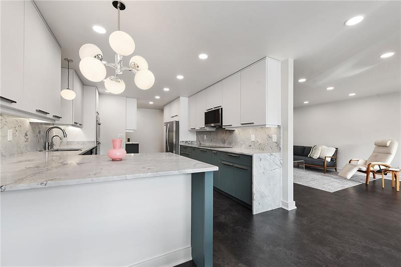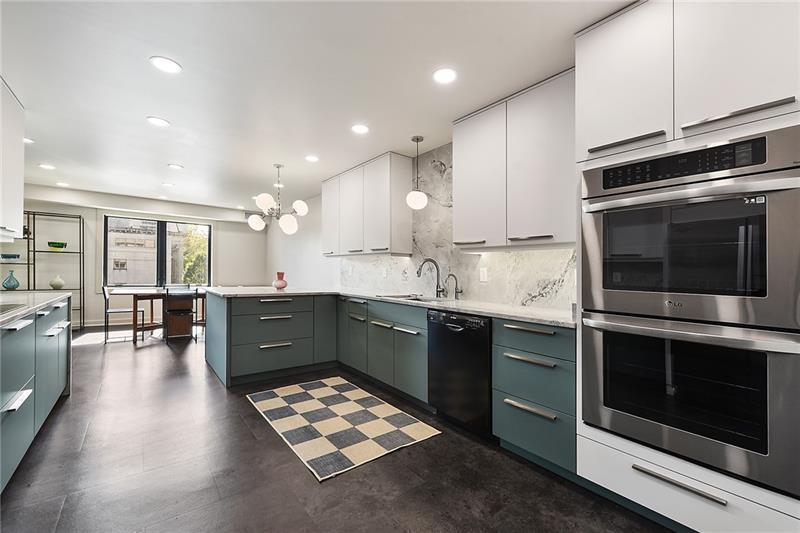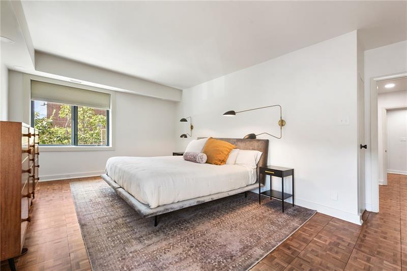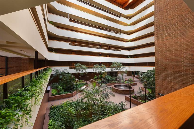 Perched on the Southwest corner of the Atrium is unit 212. Clear views from the balcony, living room, kitchen and dining room of the Carnegie Museum of Natural History and Art remind you of where you are. The Cathedral of Learning is visible from the primary suite's windows. All of this, including the University of Pittsburgh, Carnegie Mellon University, UPMC hospitals, S Craig St's lively commercial area , and more, are just outside the secure building's doors. 2 integral garage spaces mean you'll never have to contend with challenging Oakland parking. Public transportation to everywhere is within a few blocks of the front door, so you'll rarely need your car. This is one of the most coveted, and walkable locations in the University area. The Atrium's lobby is iconic. Brick, live plants, a fountain, and magnificent natural light (through the roof glazing) are everywhere. There are multiple places to sit, a community room for large events, units available for guests (hotel-style, and for a fee), a pool, and a gym. It's one of the premiere buildings in the east end. Unit 212 just underwent a soup-to-nuts renovation"”while still retaining some of the original charm. In the entry, original parquet wood flooring ushers you in. A large coat closet and entry area make for an ideal landing spot. The living room and dining room both face south, share an attached balcony, and are sun-soaked. Modern, durable tiles are underfoot and tall ceilings lend volume to the space. The unit's pièce de resistance is the kitchen. The hub of the living spaces, the kitchen houses over-sized modern cabinetry, (in two-tones) with bookmatched stone countertops and backsplashes, and expansive workspaces completed by a waterfall-edged peninsula. Open to the dining room and living room, this is where you'll spend the lion's share of your time. An in-unit washer/dryer (stacked with a laundry tub) is in a hall closet which you pass on your way to the bedroom wing. Designed as an office, with a wall of glass and great Oakland views, bedroom 2 has the original parquet floor underfoot. An updated, tile-clad full bathroom is opposite. The middle area is currently used as an exercise space. It was previously (and could again be) a third bedroom. The primary suite has multiple views, one to the south (Carnegie Museum) and the other to the west (Cathedral of Learning and a lovely tree) and there aren't any large buildings nearby to obstruct the natural light. Sizable, the primary is a sophisticated en suite, with a walk-in closet and beautiful bathroom. You are not allowed to rent units at the Atrium, part of its charm, and no pets are permitted. Windows, electric panel, a/c, heat pump, and nearly everything else were replaced recently. You just get enjoy.