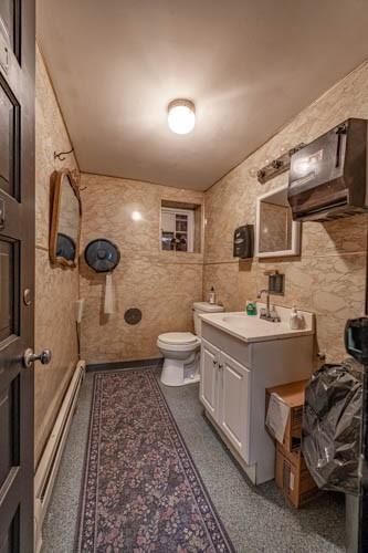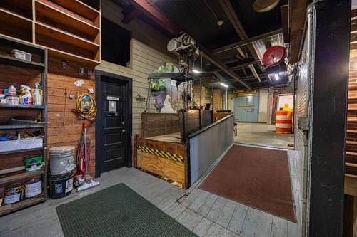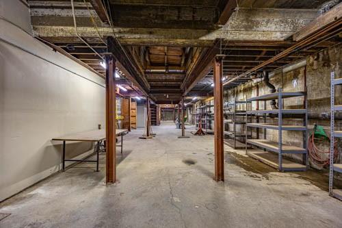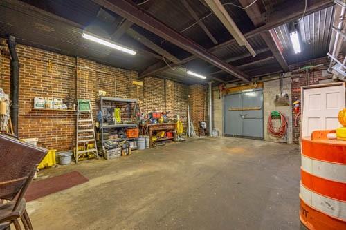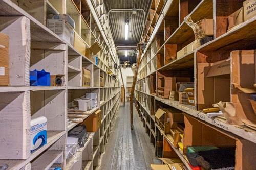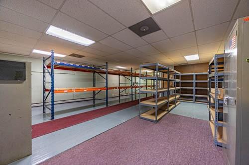 Don't miss this opportunity to own a versatile warehouse offering approximately 7,500 sq ft of storage space. A 14'W x 12'H garage door allows trucks to enter for easy loading and unloading. Property includes heavy-duty shelving throughout, elevator access to the sub-level, and the building is fully heated for year-round use. Also features an approximately 744 sq ft office area, two bathrooms, and an installed alarm system. Exterior offers six parking spaces plus one designated loading space. Clean, accessible, and well-suited for a variety of commercial or storage needs.