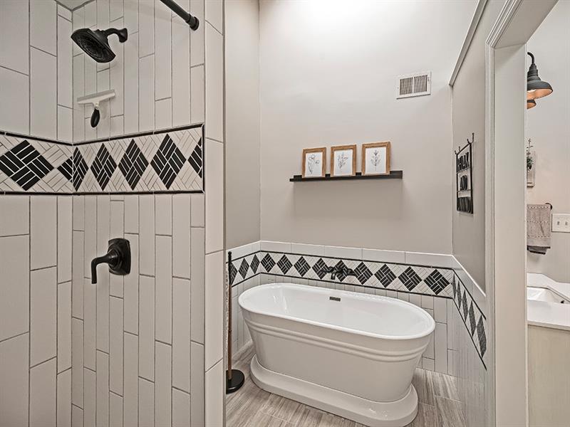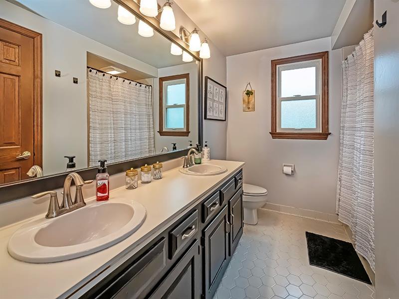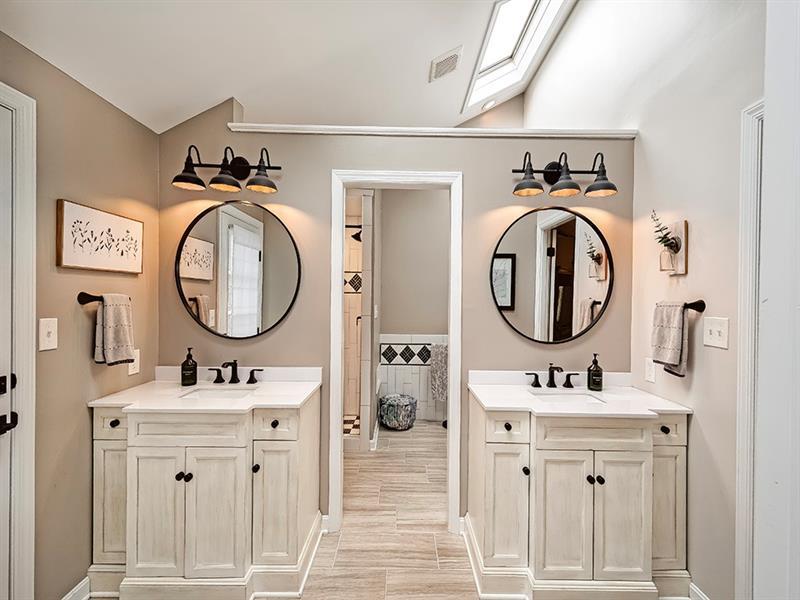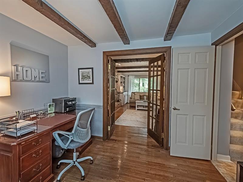 Brookside Farms Thomas built Tudor style home on a cul-de-sac! Living Room w/built-ins & crown molding (TV stays). Dining Room w/ hardwood floors,wainscoting & crown molding.Fully equipped kitchen w/stainless steel appliances & eat-in area w/doors to the the private yard and perfect patio w/gas grill (stays).Family room w/hardwood floors,brick wood-burning fireplace & built-in bookcase. The 1st floor den with French doors, hardwood floors and bookcases is light and bright and a perfect flex space. The master bedroom boasts an amazing master bath renovation w/soaking tub, shower,2 vanities, walk-in closet and a small deck to enjoy your morning coffee. Three generous bedrooms w/lots of closet space and a full bath round out the 2nd floor. The game room, exercise area and laundry room are in the lower level (tv's stay). Large 2 car garage with lots of storage and a 50 amp RV plug that could be easily converted to EV charger. Anderson windows. Updated electrical box (2022).