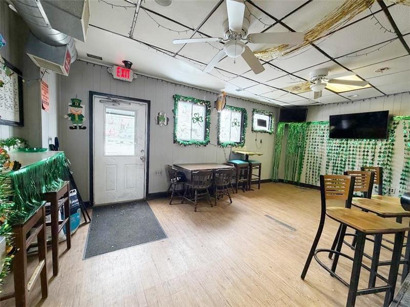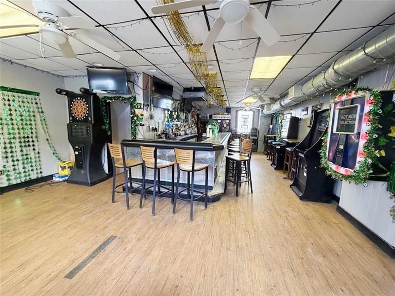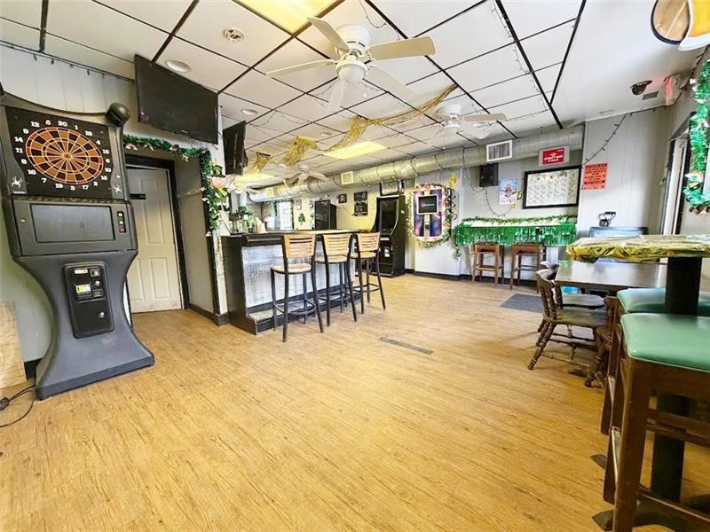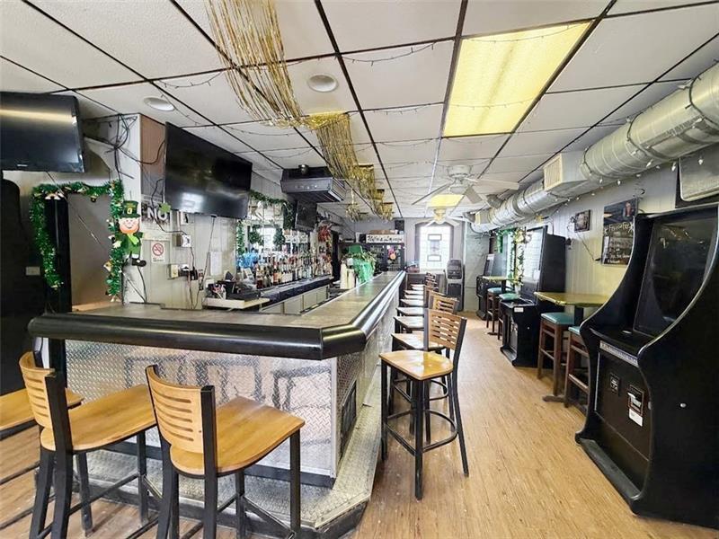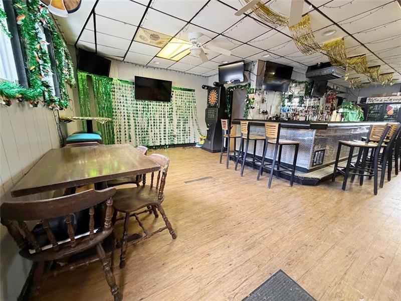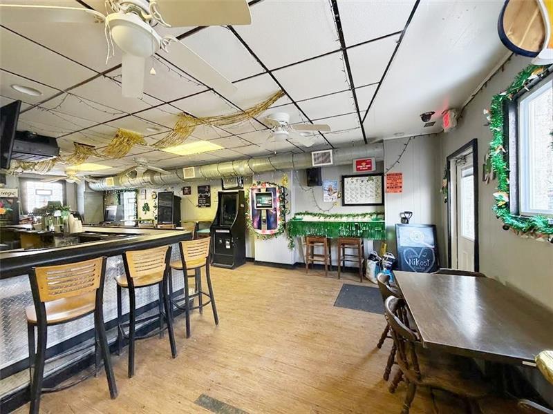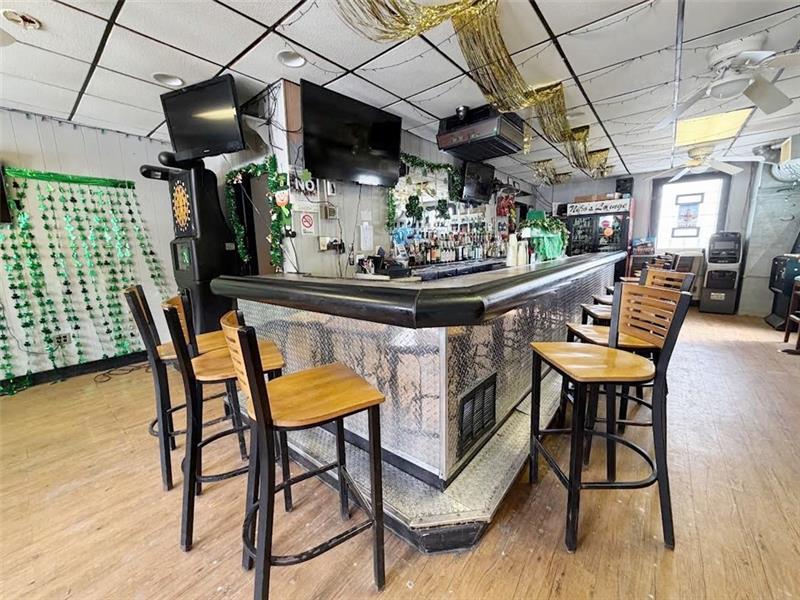 Exceptional opportunity! This Turn Key Bar and Restaurant includes both the Real Estate and Liquor License. The key to a great investment is owning the Real Estate, no lease, which provides security in your investment. There is plenty of room for expansion of the business using your own creativity. The second floor is a 3 bedroom apartment, currently rented on a month to month basis. There are separate utilites for the bar and apartment. Make your dreams come true with ownership of your new bar & restaurant. Equipment included.