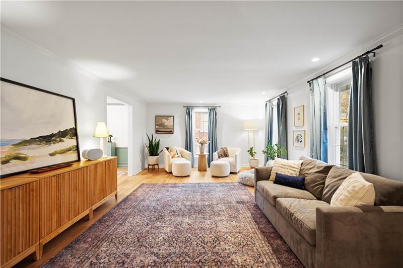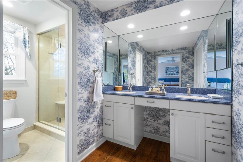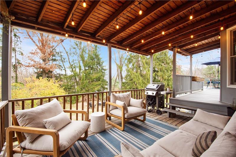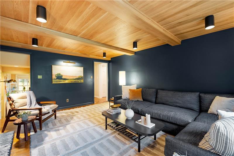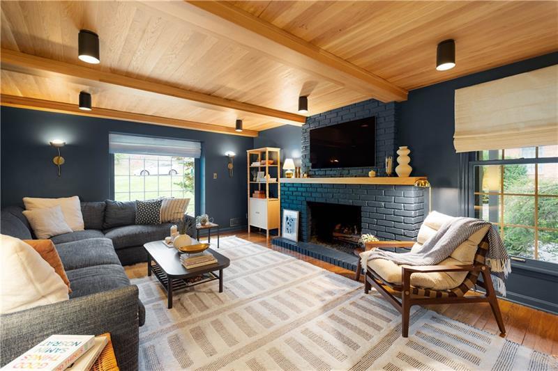 Full of soul, light & architectural character, this custom-built Trotwood Manor home beckons you inside to discover an intuitive & elevated layout. The brick-tiled entry opens to a large living room flowing seamlessly into the dining room w/ beautiful millwork & a slider to the wraparound covered & open-air deck. The spacious kitchen offers abundant cabinetry, a pantry, butcher-block island, breakfast nook & 2nd staircase leading upstairs. Just beyond is an updated powder room & swoon-worthy family room anchored by a cozy gas fireplace, stunning wood ceiling & designer lighting. A window-lined home office overlooks the covered deck, creating an inspiring place to work. Upstairs, the serene primary suite features generous space & attached nursery/5th bedroom w/ built-ins & decorative fireplace. 3 additional bedrooms w/ ample closets share the hall bath. A finished lower level provides a warm gameroom w/ built-ins, laundry & a powder room. Outside the yard is made for playing & relaxing.