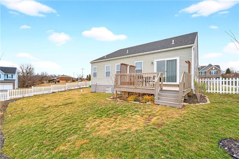 Located in the Hunters Preserve neighborhood of Jefferson Hills, 600 Torwood Lane is a beautifully maintained 2024 ranch-style home that combines modern amenities with comfort and style. Upon entering, you are greeted by thoughtfully designed open living areas. Large windows throughout the home allow natural light to fill the rooms, creating a warm and inviting atmosphere. The modern kitchen is equipped with ample cabinetry and generous workspace. Its seamless connection to the living and dining areas makes it ideal for everyday living and hosting guests. The spacious primary bedroom features a walk-in closet and a private ensuite bathroom, complete with double sinks and a beautiful upgraded walk-in shower for added luxury and convenience. Two additional bedrooms share access to a second full bathroom, ensuring ample space for family or friends and the main floor laundry adds to the home's practical layout. The lower level allows for limitless potential in adding to the property's square footage. Dependent on your needs, the space will allow for a game room, gym, office, playroom while providing plenty of storage space. The fully fenced backyard with a rear deck is perfect for outdoor activities and enjoyment. Located within the West Jefferson Hills School District and close to plenty of shopping, dining, and major roadways.