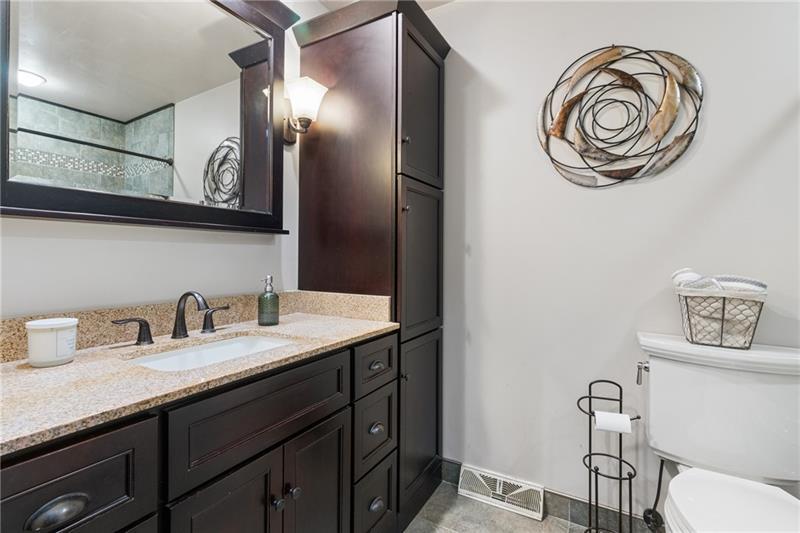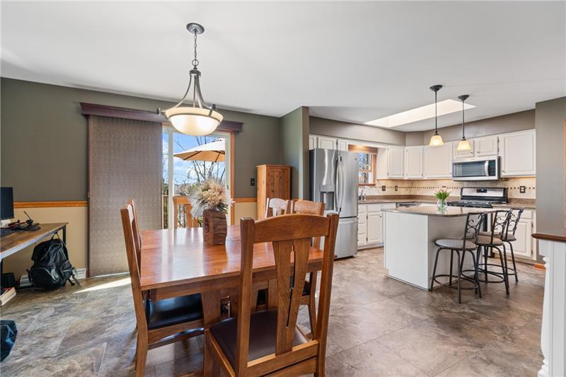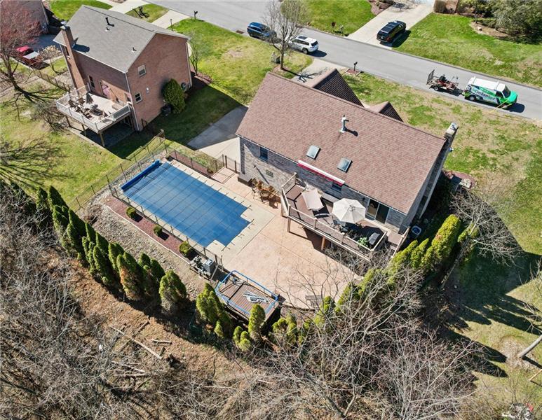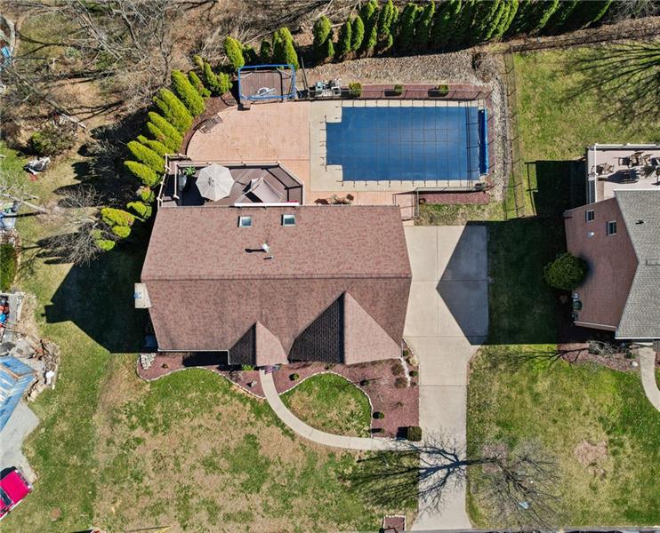 Welcome home to an abundantly oversized split level located in the West Jefferson Hills School District. As you step inside you are greeted with an enlarged entry foyer and cathedral ceilings in the living area that create an open & airy feel. Entertaining is simple with plenty of space provided for guests at the kitchen island and the dining area that leads out to the 20x30 composite deck equipped with lighting and stairs that lead you down to the lower patio. The primary bedroom repeats the cathedral ceilings, has plenty of closet space and an en suite. The shared hall bath and lower level bath have both been recently updated. The finished game room includes a functional wood burning fireplace and provides additional living space for entertaining, relaxing or even a 4th bedroom! Step outside to enjoy time in the fenced in backyard with a 16x32 heated in ground pool surrounded by a stamped concrete patio. There is ample storage available in the oversized 31x25 two car garage that leads you out onto the concrete driveway and table top flat front yard. In this neighborhood you will find nice areas for walking and Tepe Park that offers a baseball field, playground, basketball court and pavilion. Convenient layout with generous room sizes and plenty of indoor and outdoor living spaces.