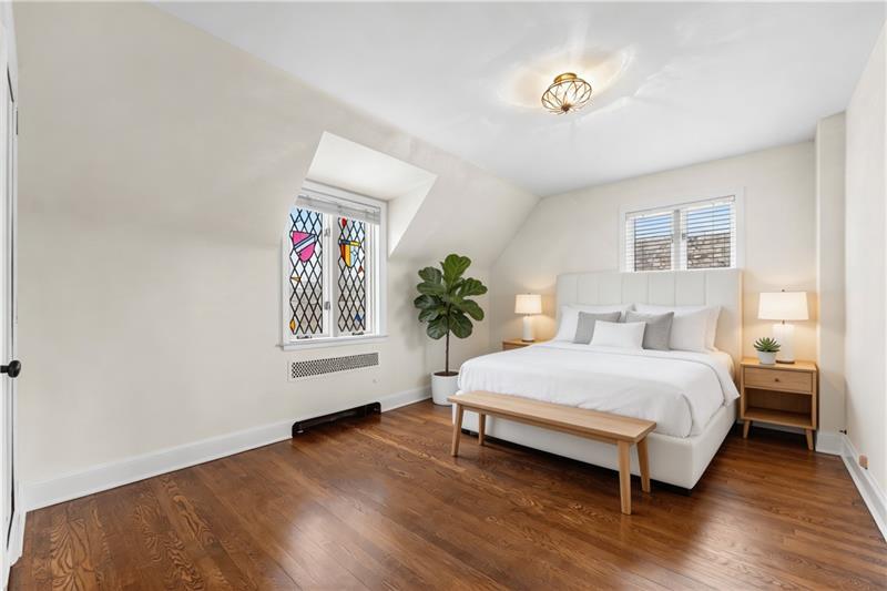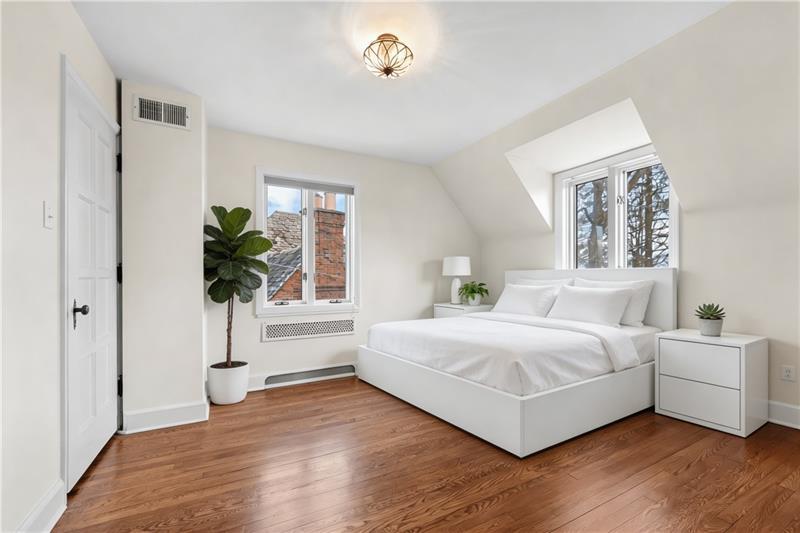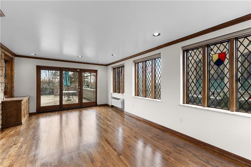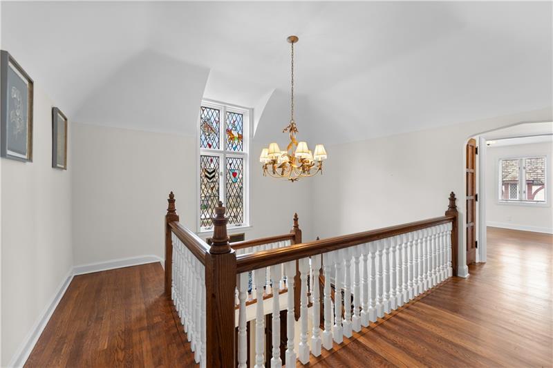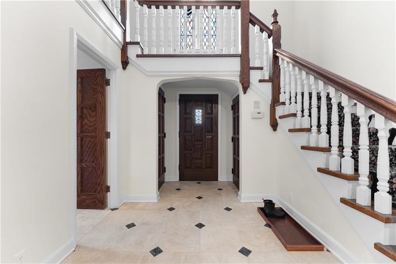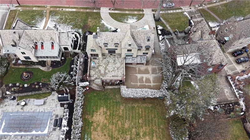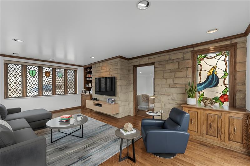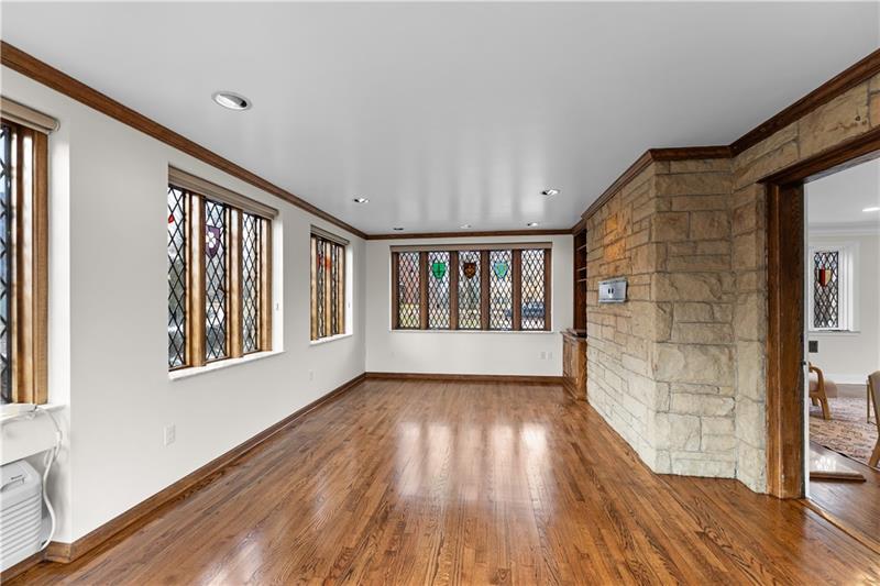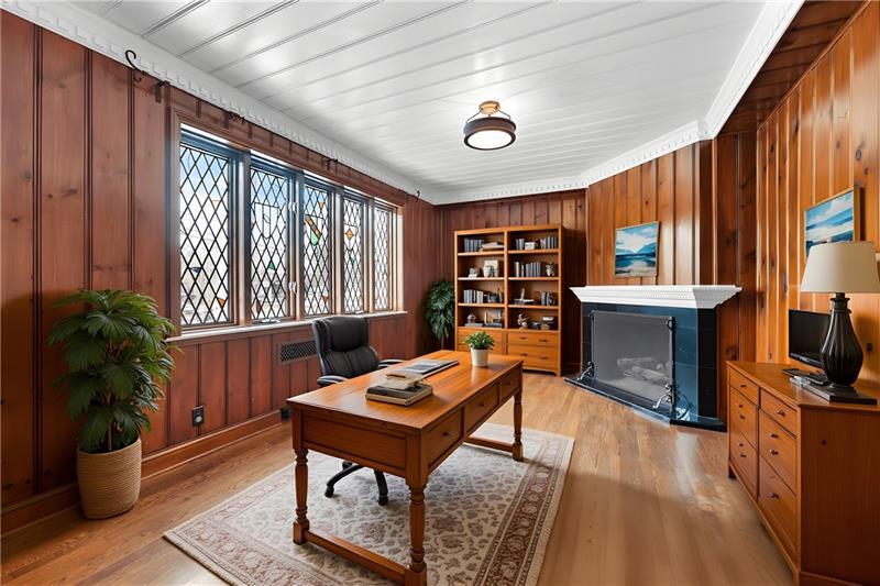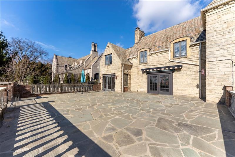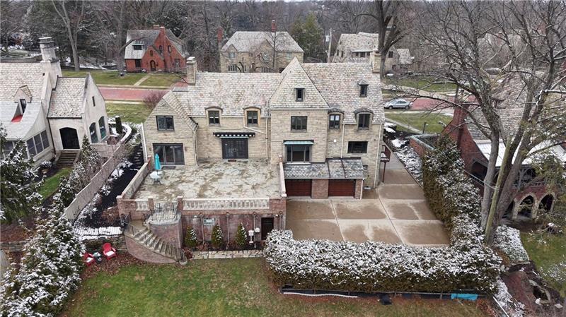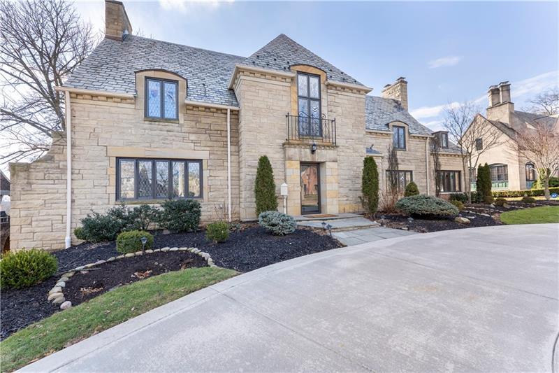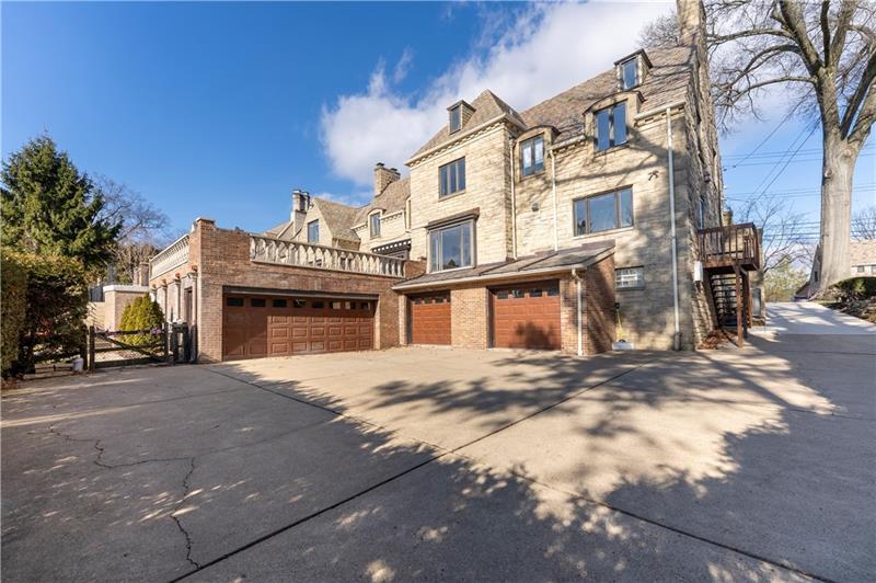 Stately 1932 stone Tudor showcases timeless craftmanship with beautiful stained glass windows, classic stonework and gracious living spaces throughout. Lovingly maintained and beautifully cared for, this special home reflects true pride of ownership. WELCOME through original detailed front wood door into two story entry featuring grand staircase with large stained glass window. Dual staircases-a grand front and a private rear staircase offer convenience throughout the home. First floor living has wonderful flow. New chef's kitchen with top of line appliances with center island and ample cabinet space. Wet bar in dining area open to kitchen perfect for family gatherings. Great flow on main floor from kitchen to dining to living room and family room all along back of home with large windows and doors letting in the sun! Front of house has a private office with dark wood and fireplace. An impressive back flagstone patio overlooks the expansive, level and private backyard, creating a serene outdoor retreat perfect for entertaining. Oversized primary suite with stunning Restoration Hardware- spa-like bath with an elegant soaking tub and oversized walk-in shower, blending timeless design with modern comfort. Spacious four bedrooms on second level and fifth bedroom on third floor with full bath. Could be a guest suite or in-law suite. Lower level boast of finished family room with fireplace a nice large cedar closet and laundry/furnace room. Additional highlights included a rare six car garage, generous room sizes and a premier Mt Lebanon location.